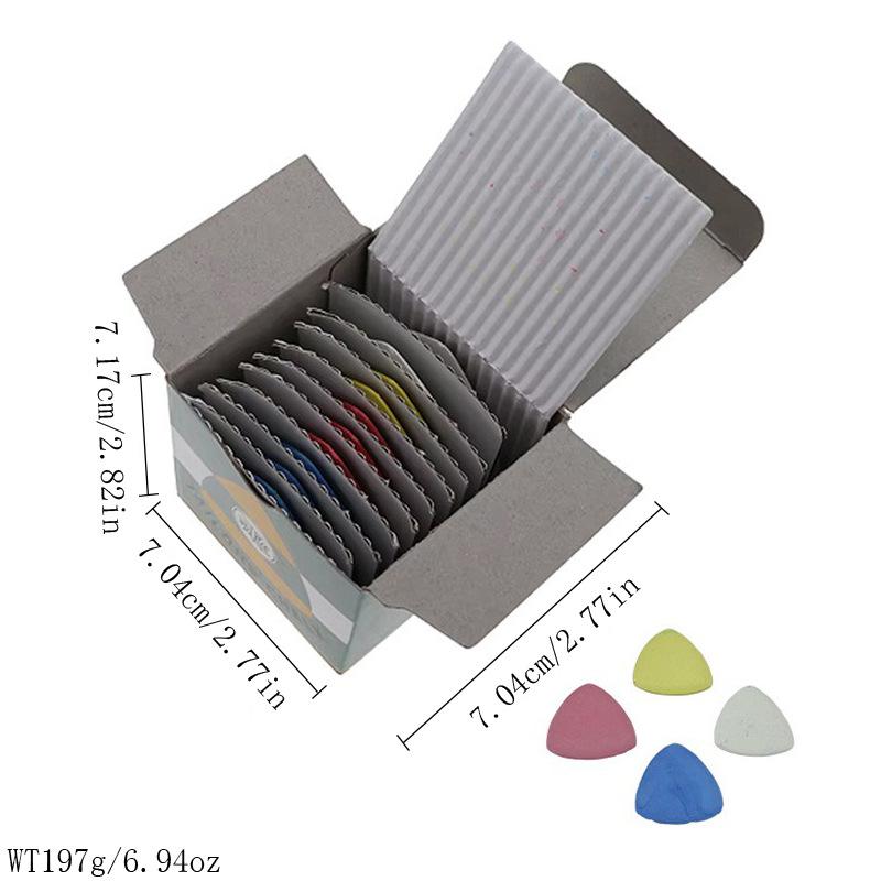 Polvo para rascar de color de alta calidad, cada caja tiene cuatro colores: rojo, amarillo, azul y blanco; empaque en caja de papel, fácil de almacenar, 10 piezas por caja, cada pieza es muy gruesa y se puede usar durante mucho tiempo~~ Este producto es limpio y no tiene polvo, es un producto respetuoso con el medio ambiente, ingredientes: tierra sin fósforo y cera; no es fácil de romper, fácil de rascar y limpiar.