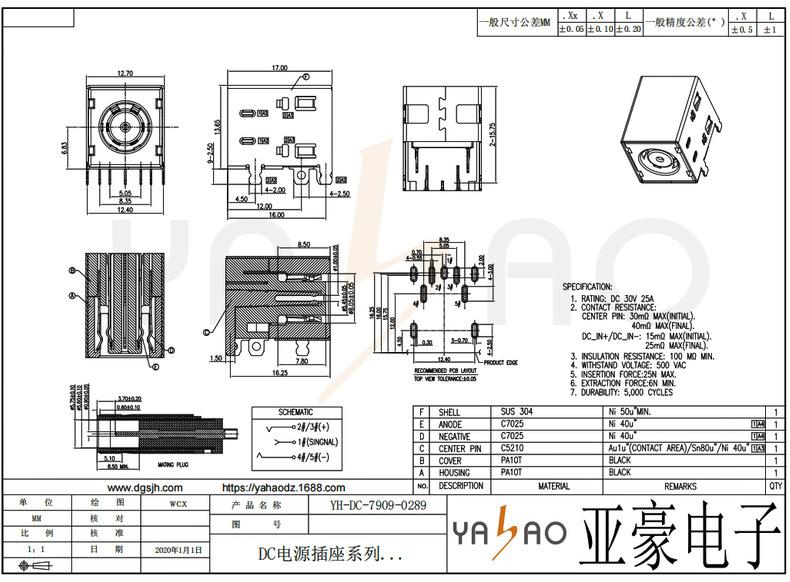 | Toma de corriente DC-4506DR personalizada, conector de toma de carga DC, enchufe recto de 180 grados con interfaz de oreja |