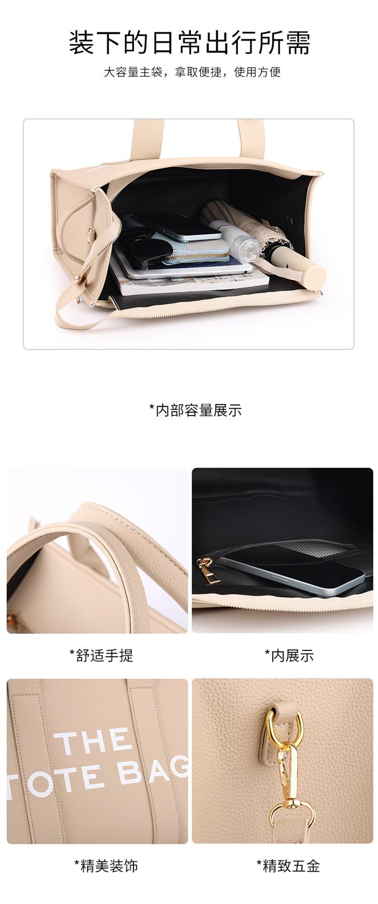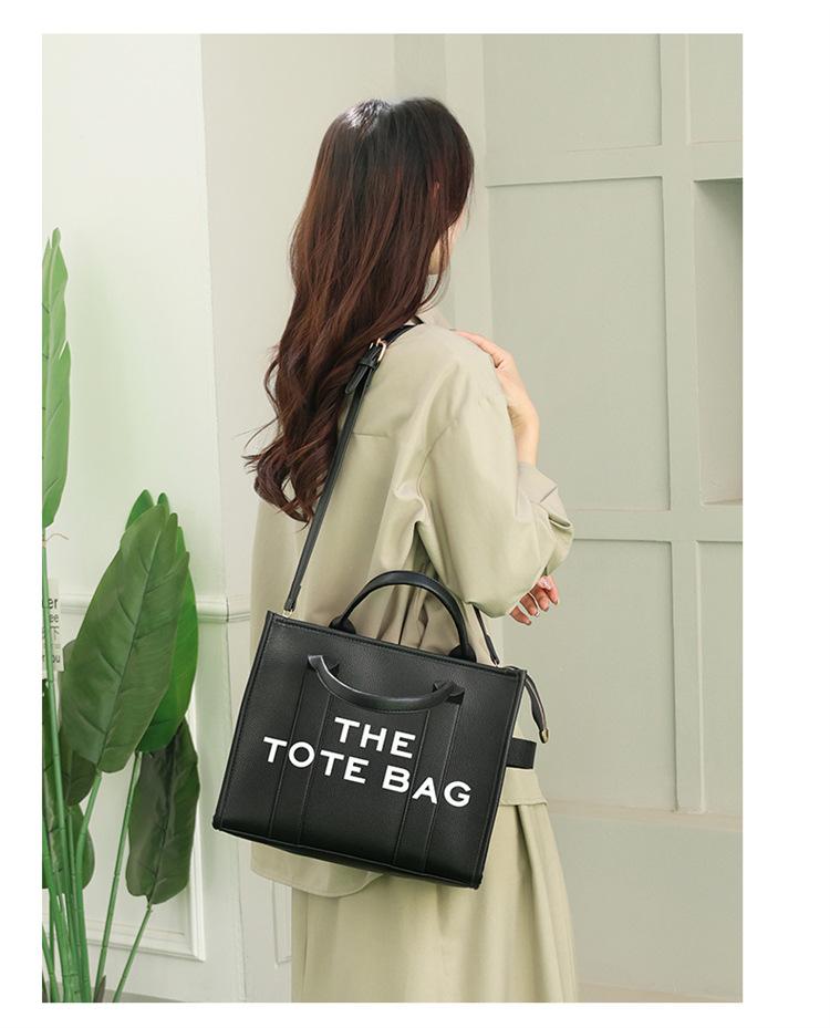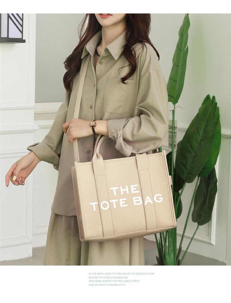 Bolso Transfronterizo Nuevo para Mujer Bolso de Hombro Color Sólido PU Letra Bolso Tote Simple Casual Bolso Cruzado Bolso de Mano de Gran Capacidad