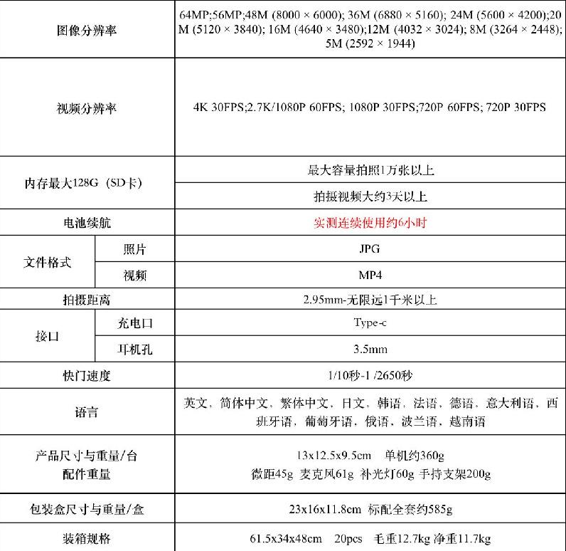 Host + shoulder strap + lens cap + data cable + manual + certificate + warranty card