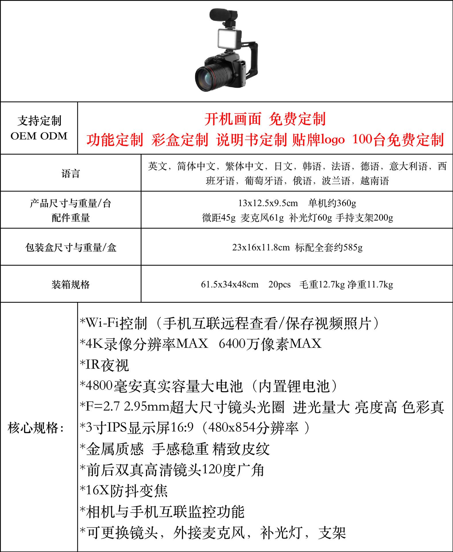 Nuevo producto, cámara digital D5 HD wifi de 64 millones de píxeles, cámara dual 4K, visión nocturna, cámara DV transfronteriza