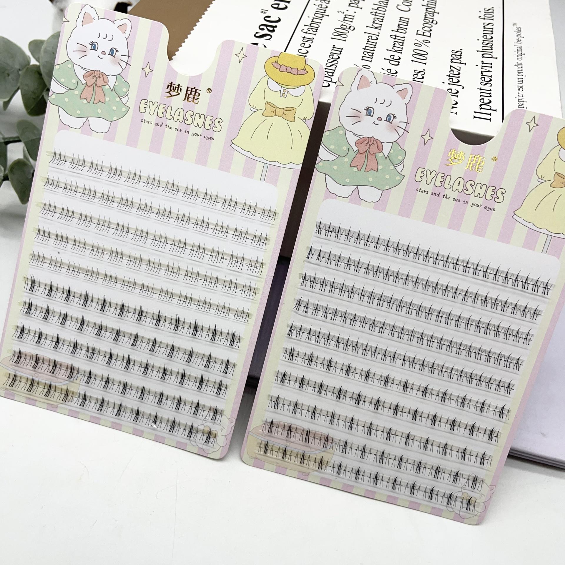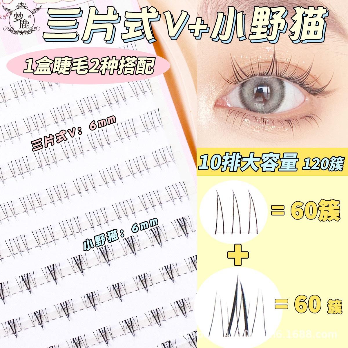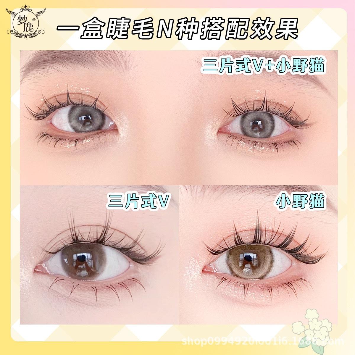 Pestañas postizas Menglu de tres piezas con diseño de llama pequeña y gato salvaje, mezcladas con girasoles, para principiantes, de un solo grupo.