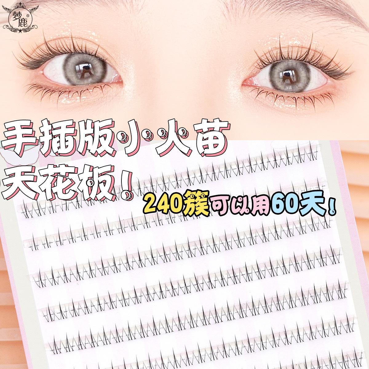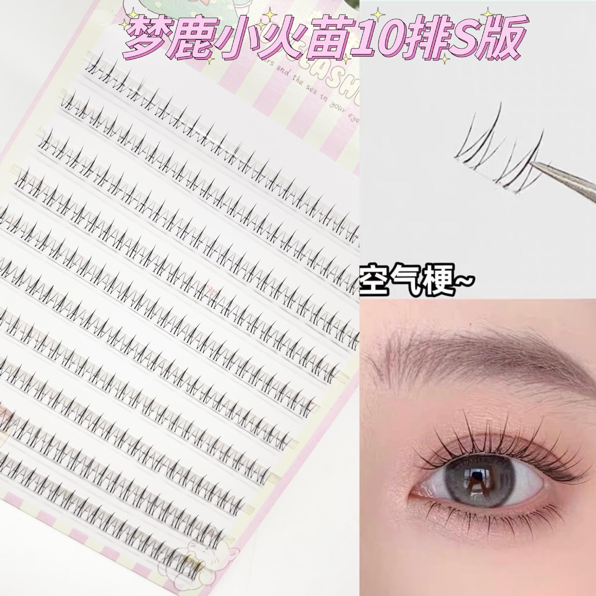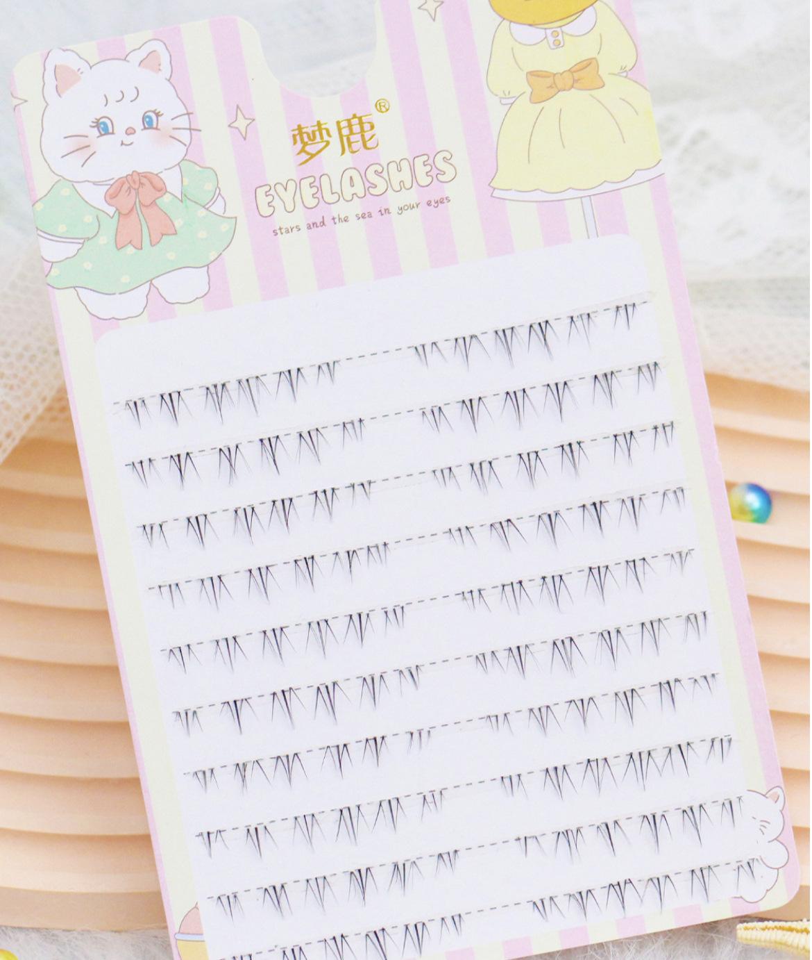 Pestañas postizas Menglu de tres piezas con diseño de llama pequeña y gato salvaje, mezcladas con girasoles, para principiantes, de un solo grupo.