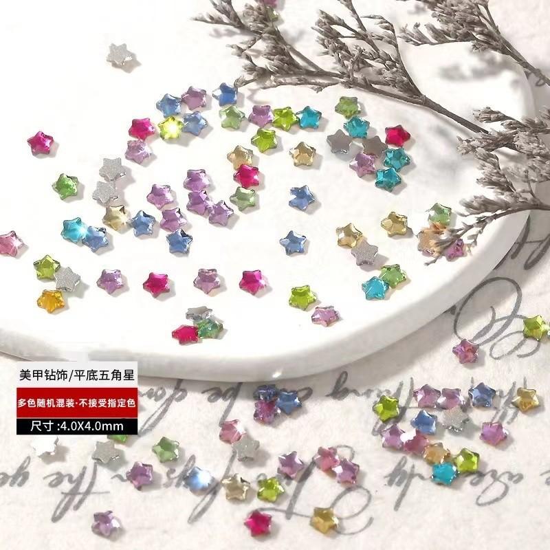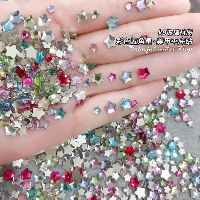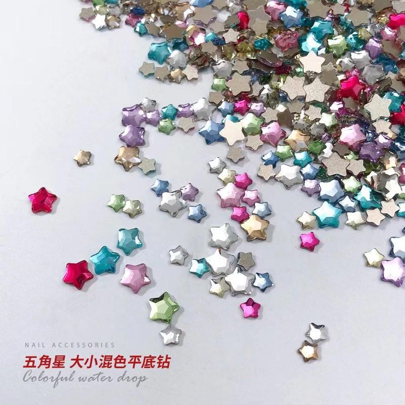 Arte de uñas de tamaño pequeño, estrella de mar gruesa, estrellas de diamante planas, colores mixtos, diamante de forma especial, estrella de cinco puntas, lazo de diamante de color, joyería para arte de uñas
