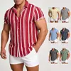 Ropa de Hombre Transfronteriza Primavera y Verano 2026 Nuevas Camisas para Hombre Camisas Casuales para Hombre Camisas de Manga Corta Estampadas a Rayas para Hombre