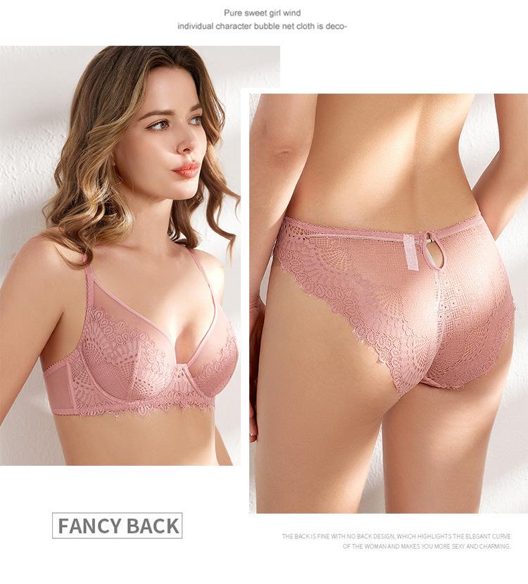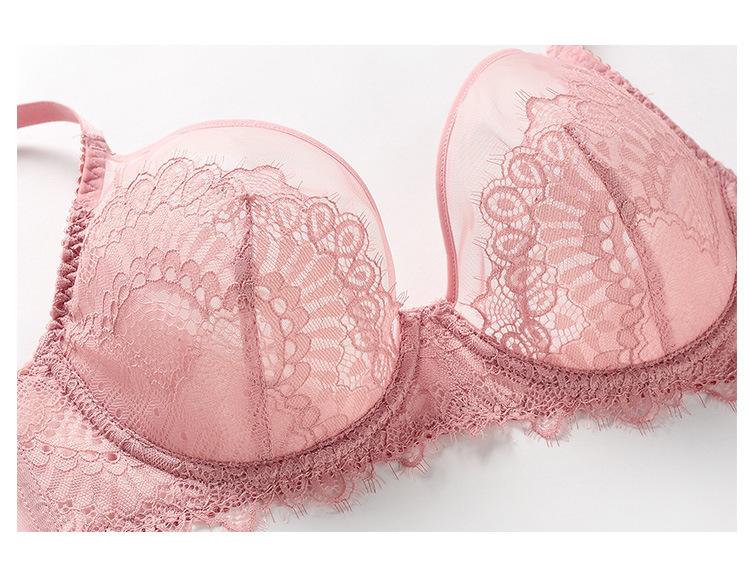 Conjunto de sujetador push-up para mujer, nuevo, sexy, fino, transparente, de encaje, talla grande, pecho grande, pequeño