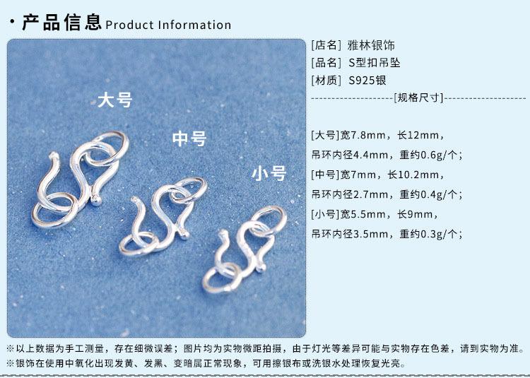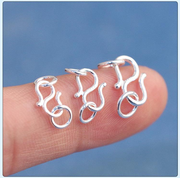 Anillo doble de plata esterlina S925 con hebilla en forma de S, tamaño grande y pequeño, hebilla de plata, pulsera, collar, hebilla de conexión, bricolaje, hecho a mano, joyería de plata con cordón hecho a mano.