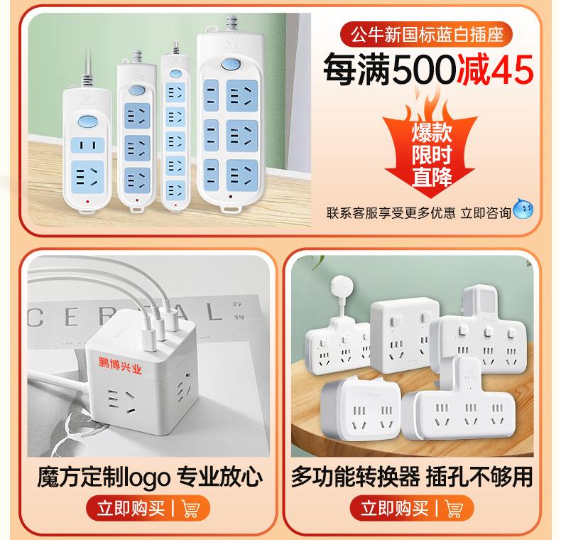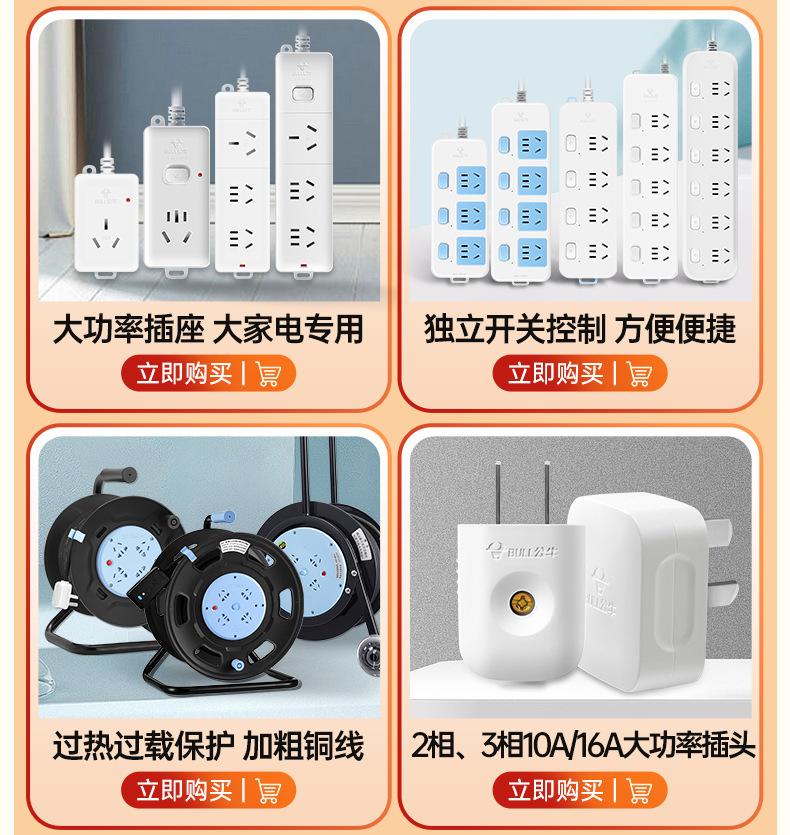 Convertidor de Enchufe Bull Aire Acondicionado Doméstico de Alta Potencia 16A Regleta de Enchufes con Regleta de Cables Conversión de Energía Multifuncional