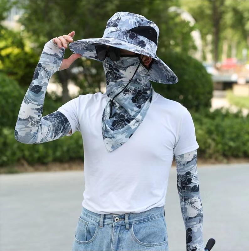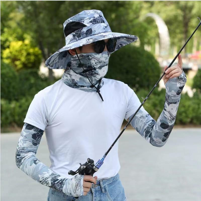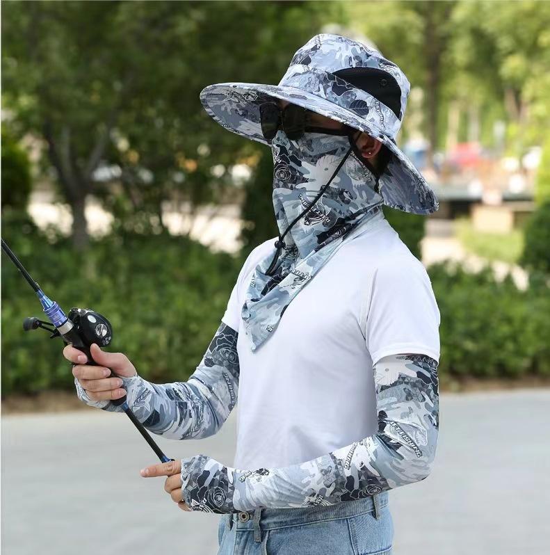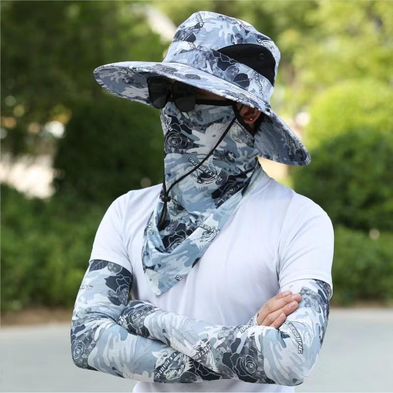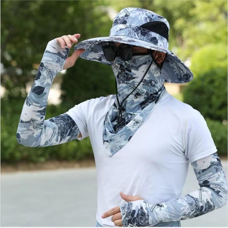 Sombrero de pescador de verano con ala larga y secado rápido, protector solar para exteriores, fino y grande, para cubrir la cara, conjunto de cuatro piezas, sombrero de pesca de tres piezas
