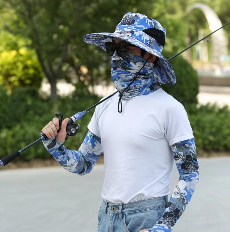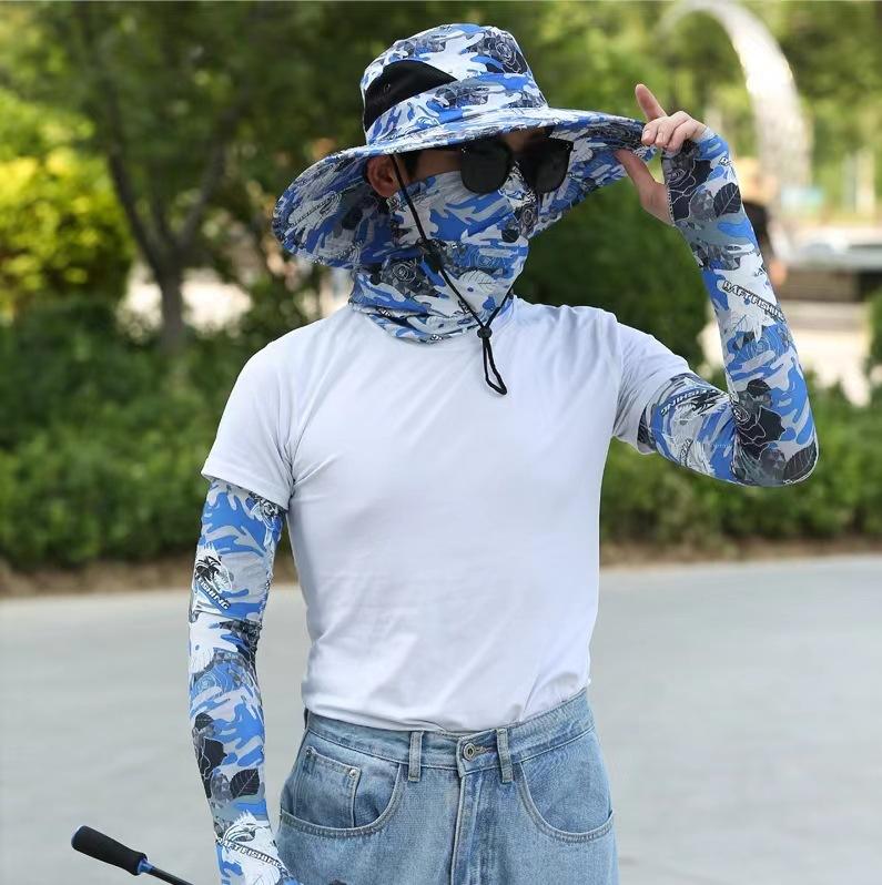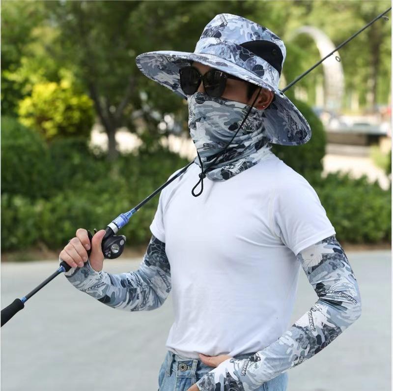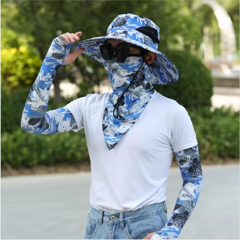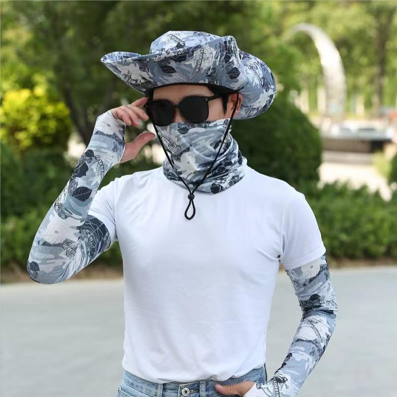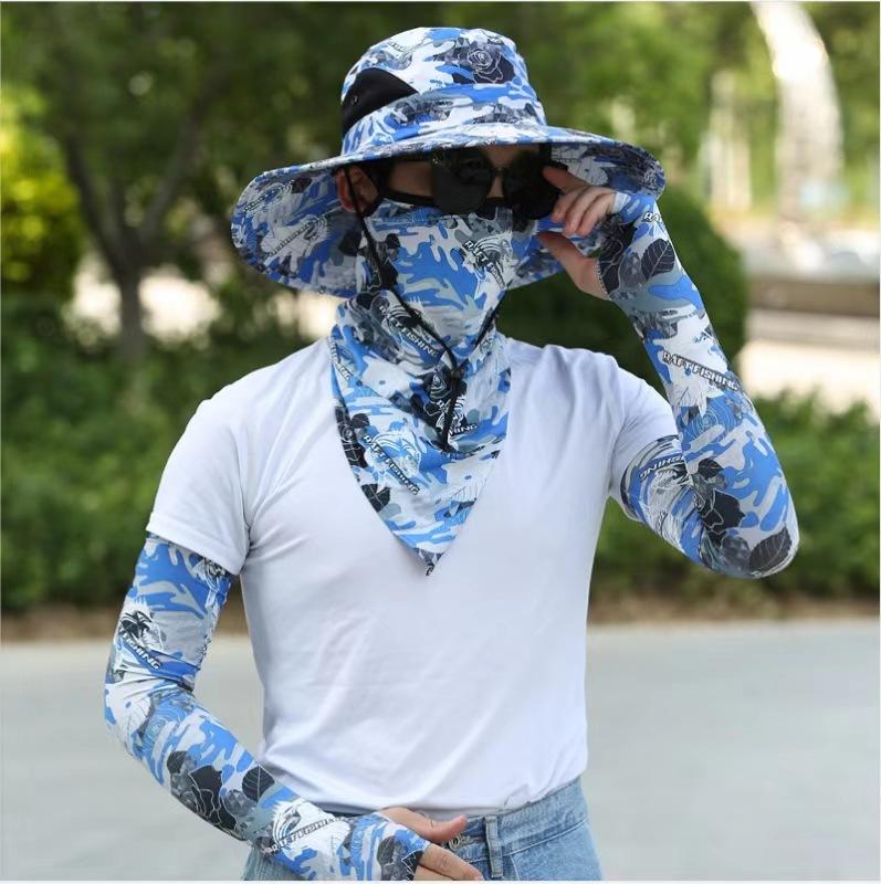 Sombrero de pescador de verano con ala larga y secado rápido, protector solar para exteriores, fino y grande, para cubrir la cara, conjunto de cuatro piezas, sombrero de pesca de tres piezas