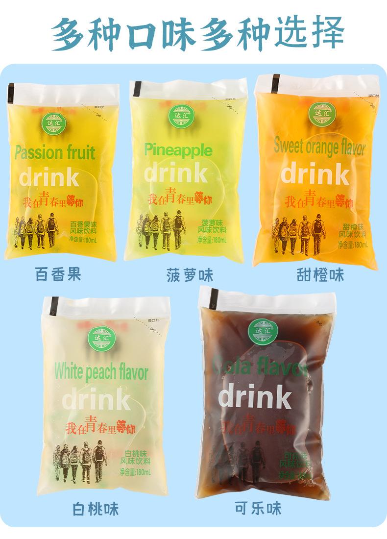 [coke flavor] 180ml/bag, [pasifruit flavor] 180ml/bag, [sweet orange flavor] 180ml/bag, [pineapple flavor] 180...