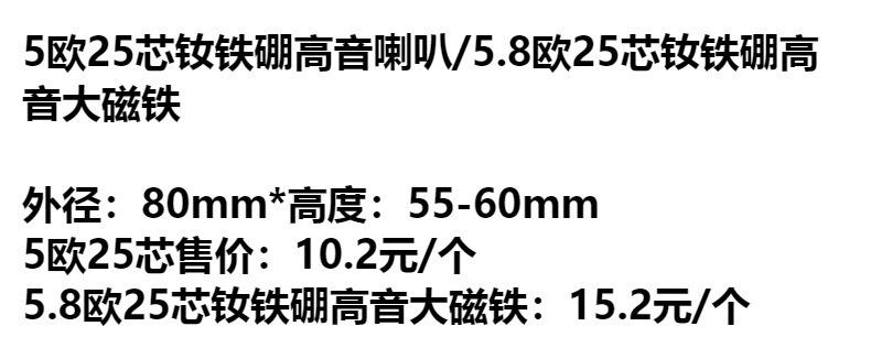 5 euro 25 core NdFeB tweeter, 5.8 euro 25 core NdFeB treble magnet