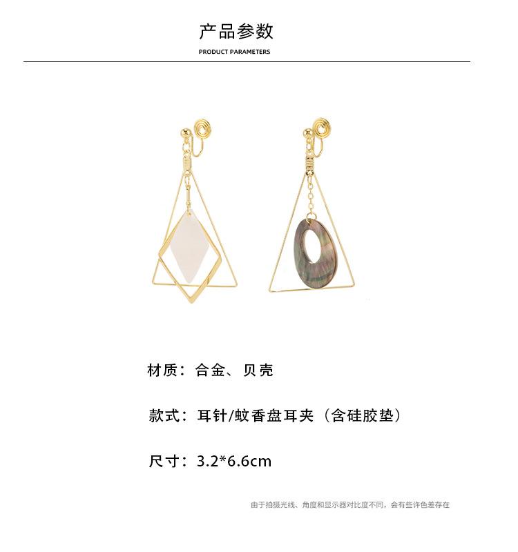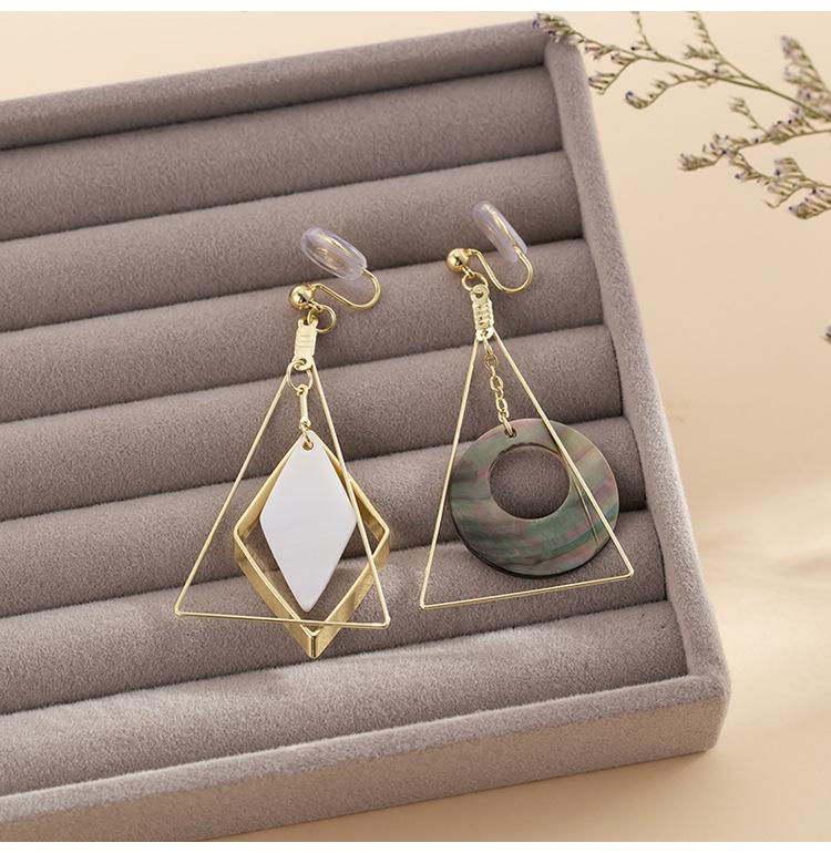 Compra Aretes asimétricos de borla ovalada de diamante, metal, triángulo largo, moda avanzada, clip para la oreja tipo espiral para mosquitos sin perforación al por mayor en Joom.pro