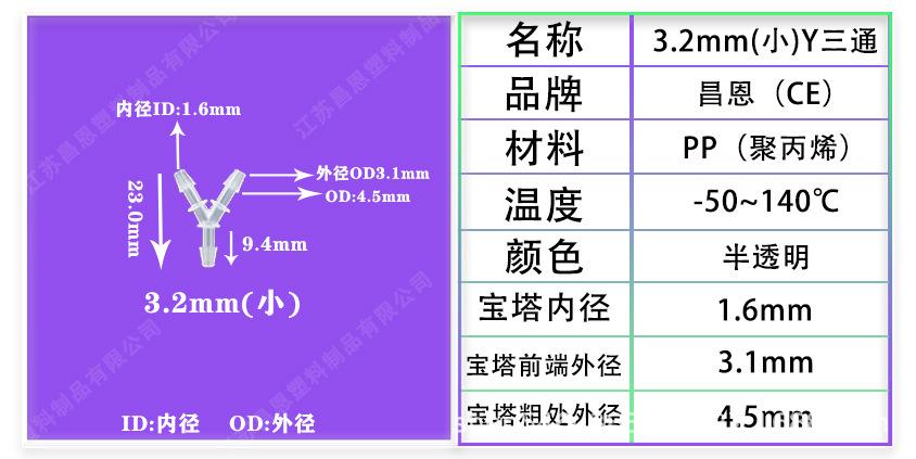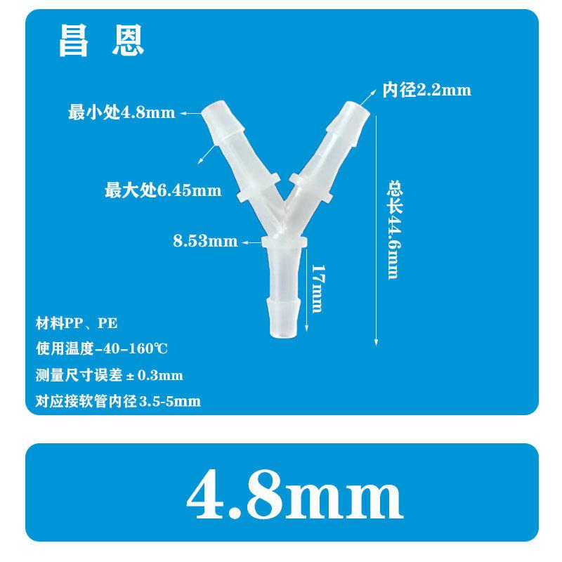 Conector pagoda de tres vías en Y para manguera separador de agua PP diámetro igual tres vías manguera de goma conexión de tubería de agua de plástico cría oblicua oxígeno