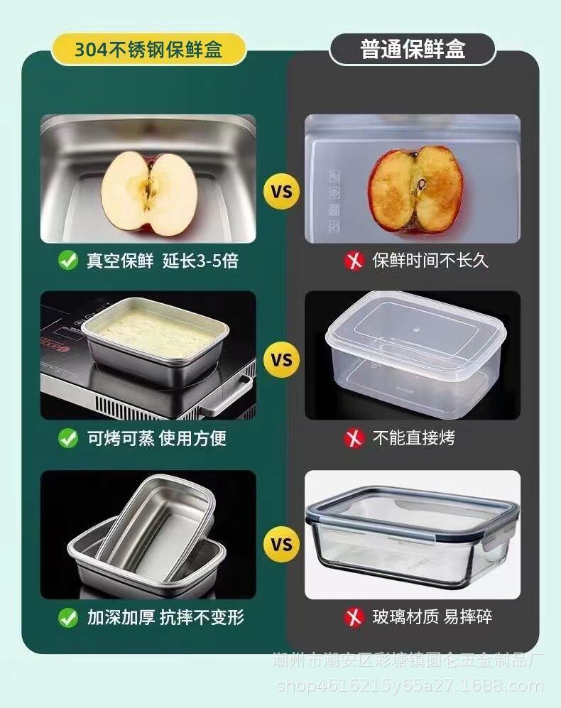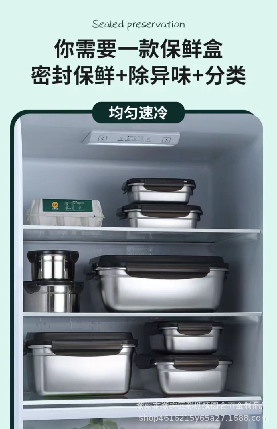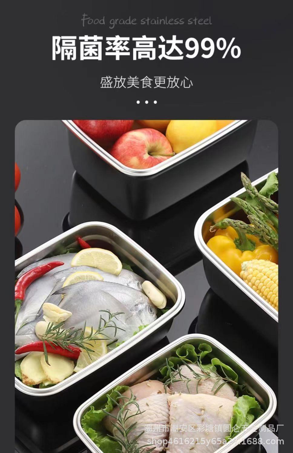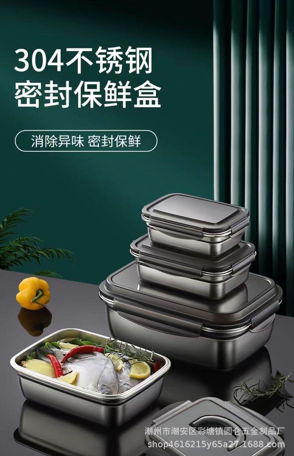 Ventas Directas de Fábrica Crisper Acero Inoxidable 304 Refrigerador Rectangular Venta al por Mayor Espesado Almacenamiento Sellado Lonchera Lonchera