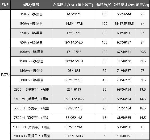350ml, 500ML, 550ml, 850ml, 1000ml, 1500ml, 1800ml, 2800ml, 2800ml (single handle), 3800ml (single handle), 55...