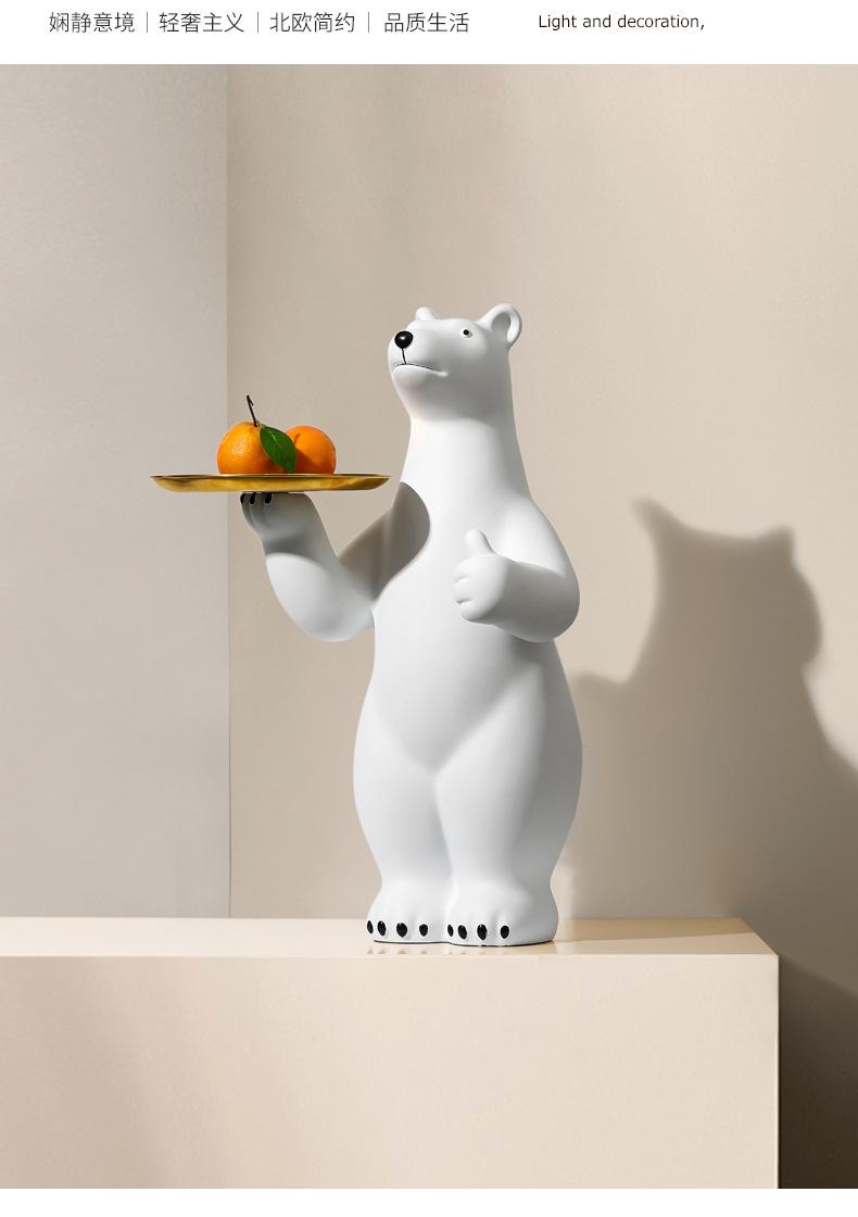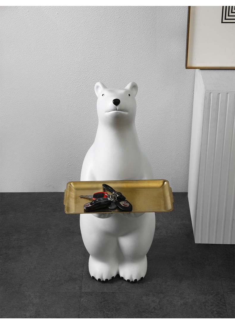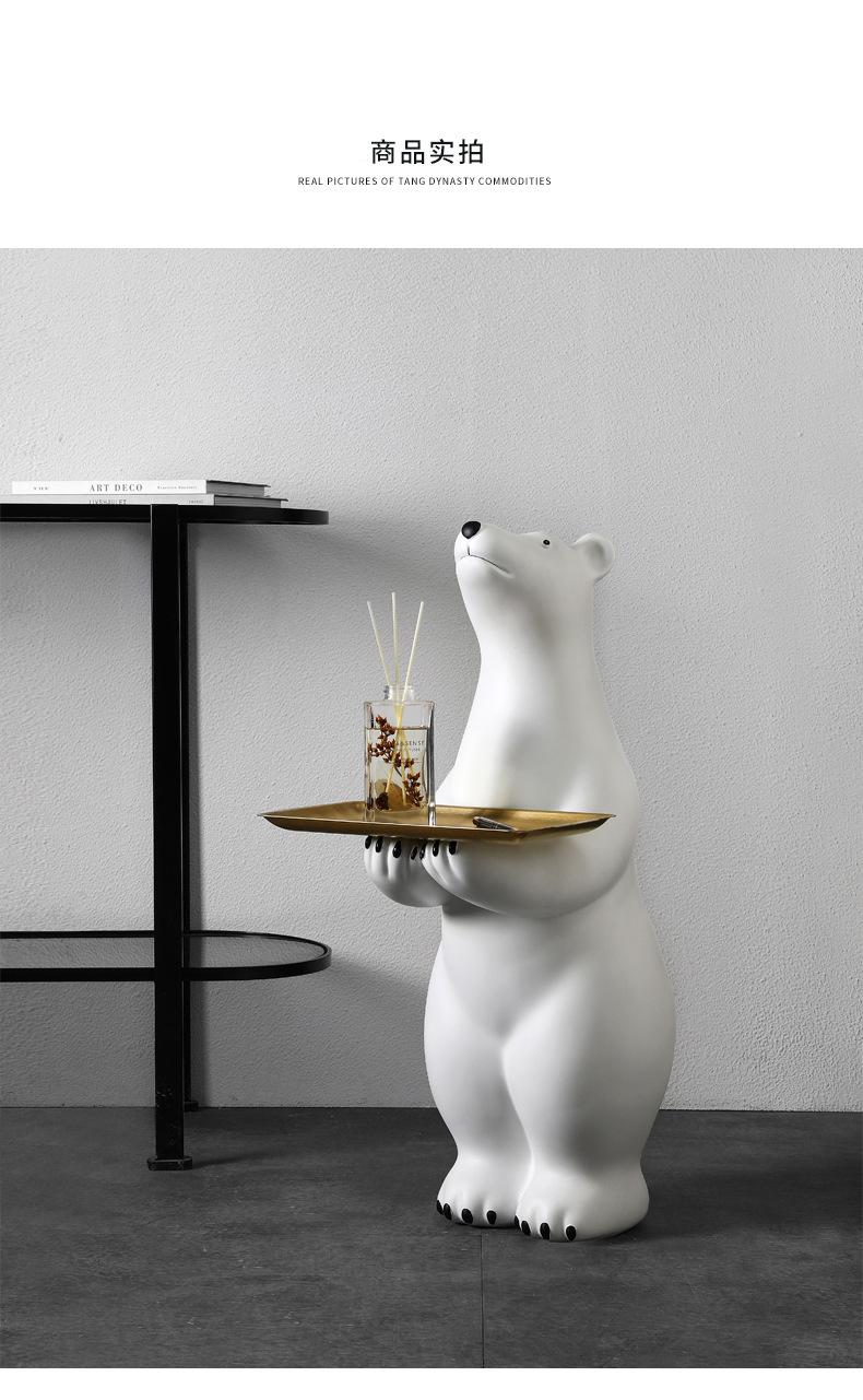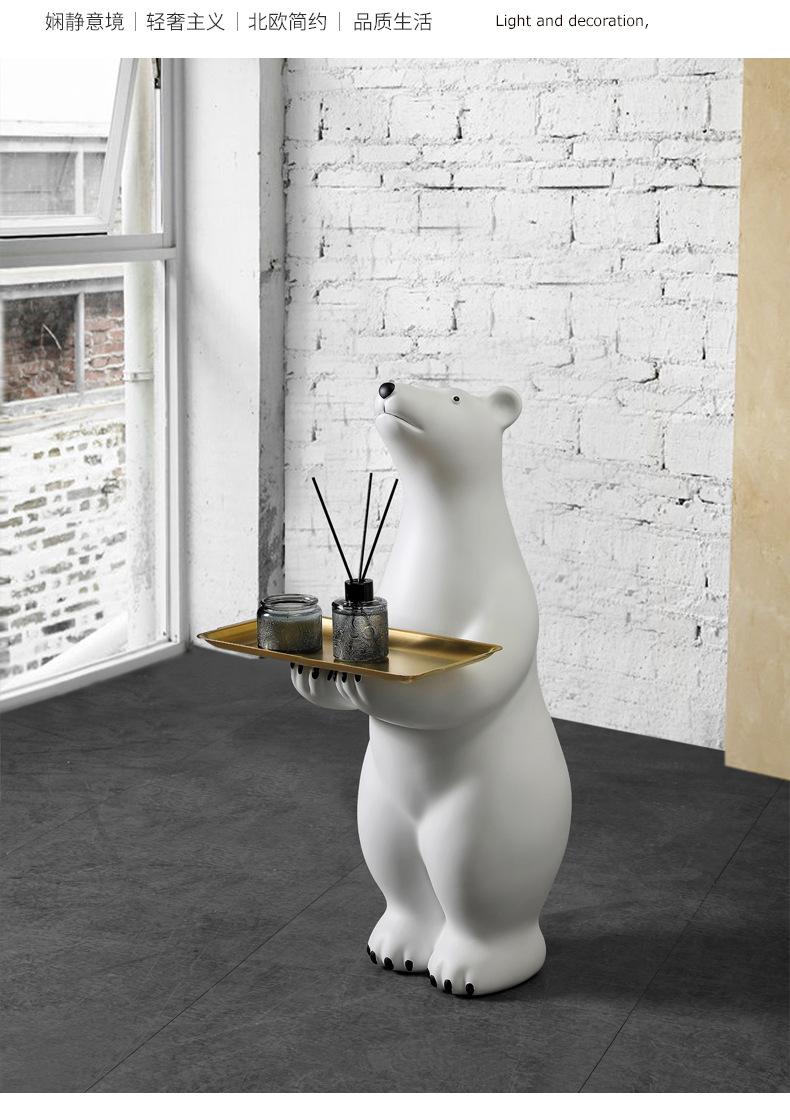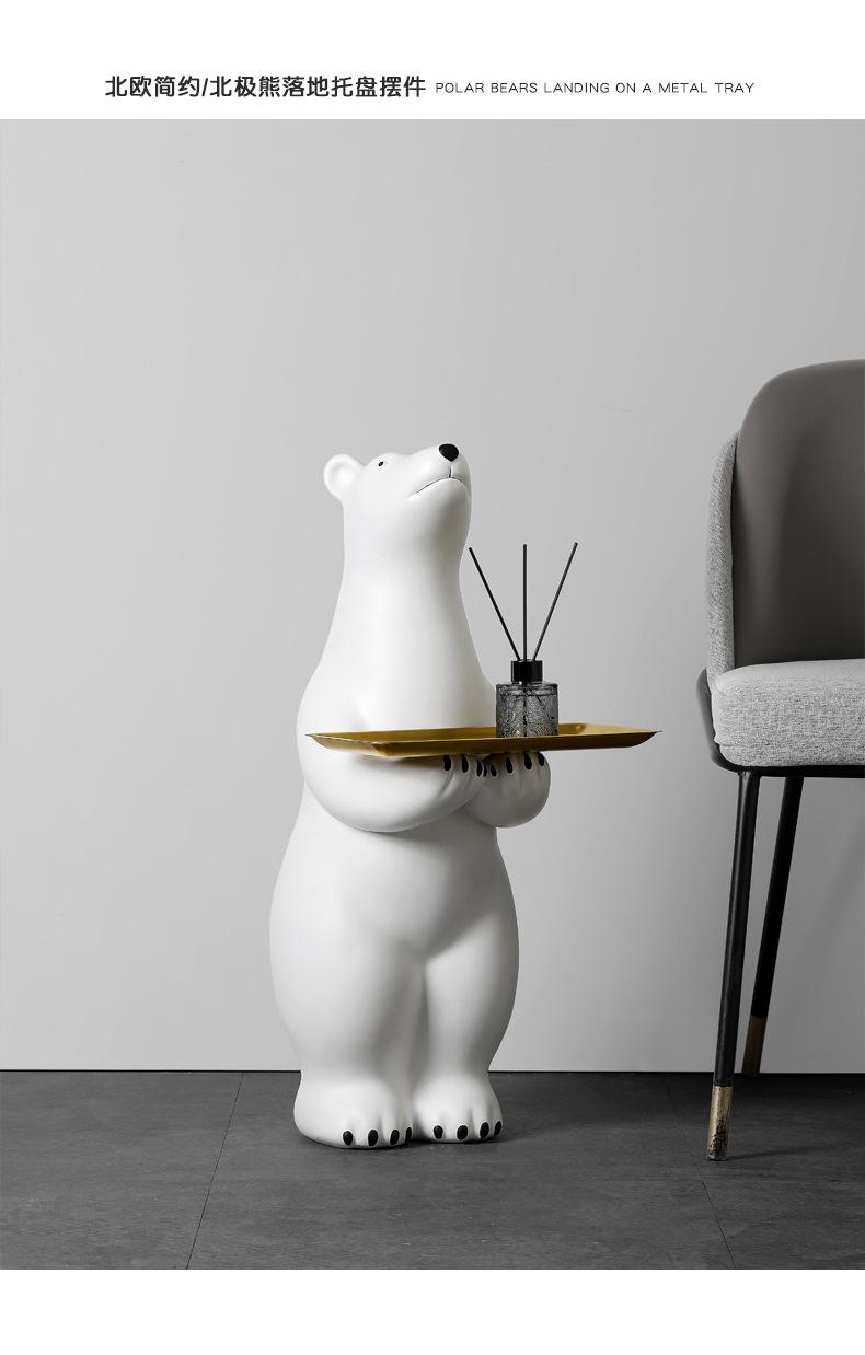 Adornos de oso polar para el suelo de la sala de estar, gran animal, luz creativa, mueble de TV de lujo, bandeja de almacenamiento decorativa para escritorio