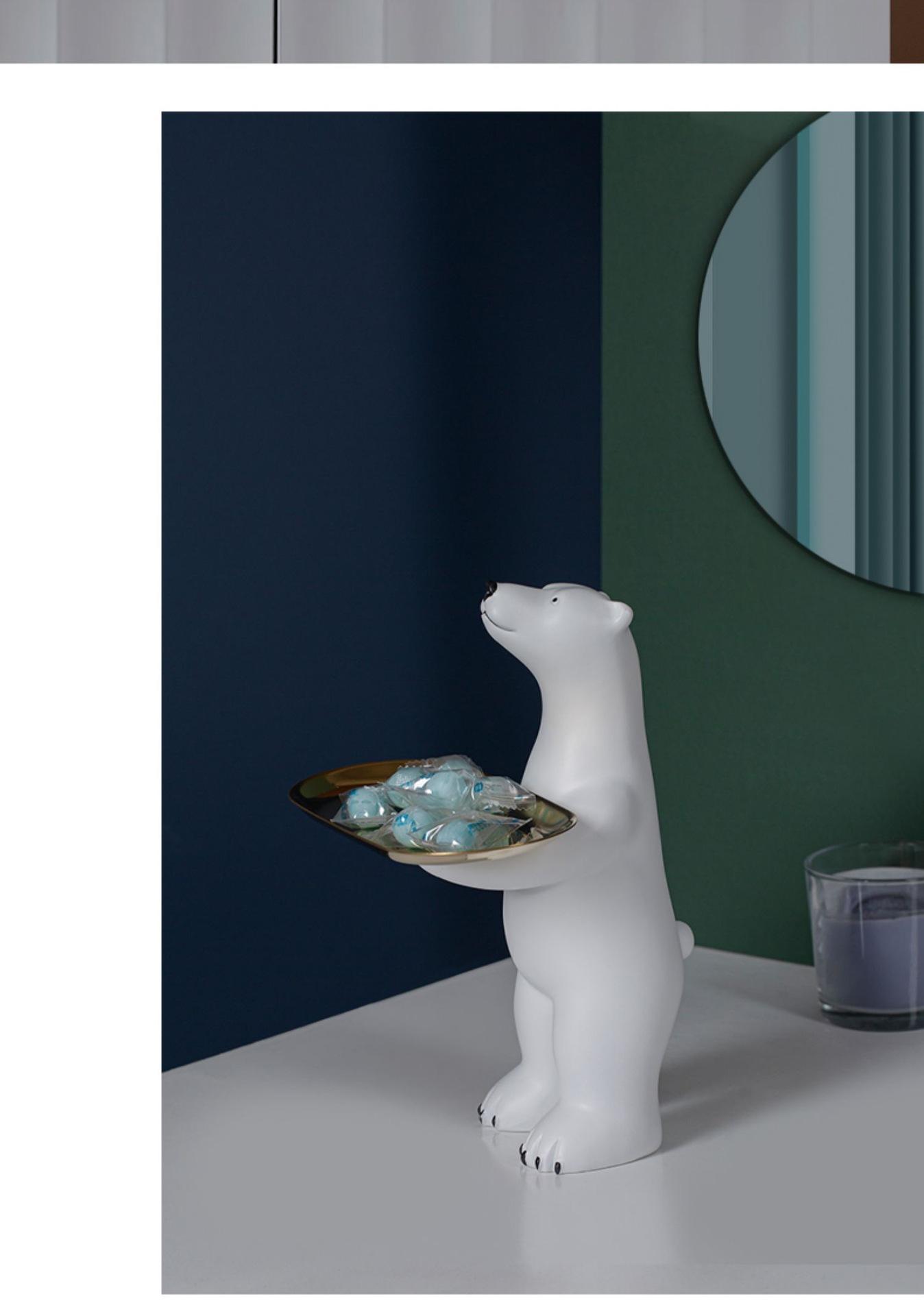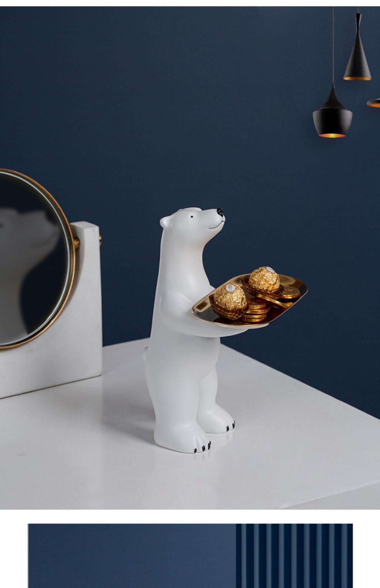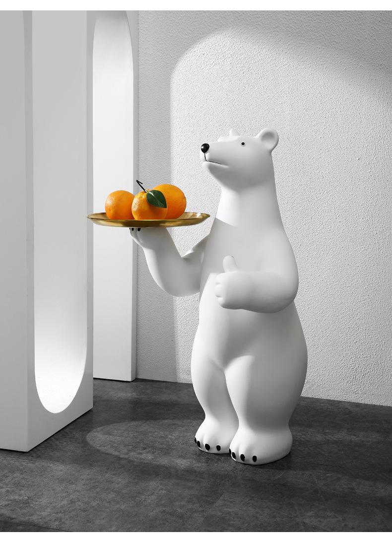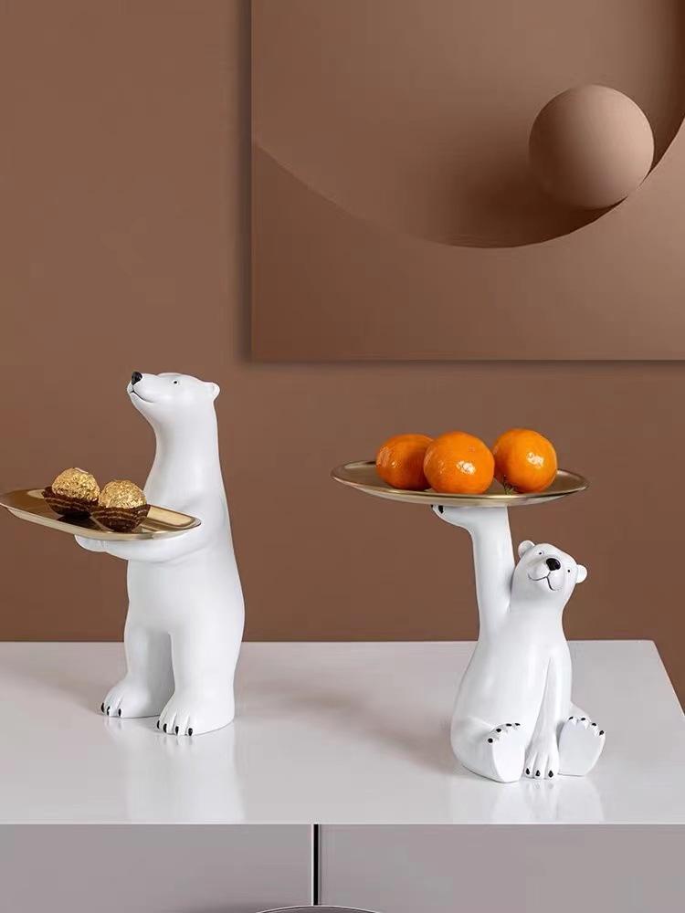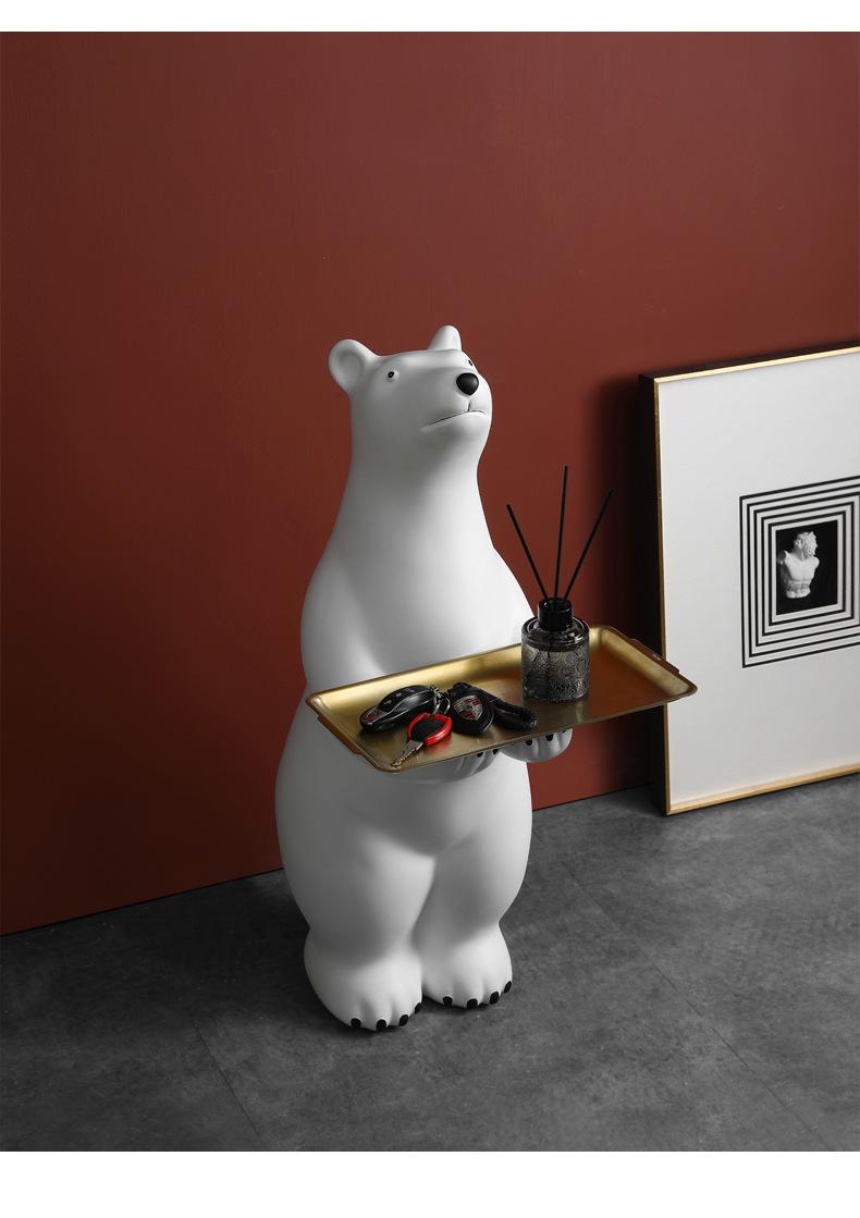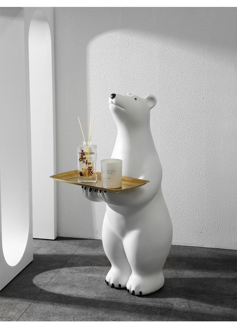 Adornos de oso polar para el suelo de la sala de estar, gran animal, luz creativa, mueble de TV de lujo, bandeja de almacenamiento decorativa para escritorio