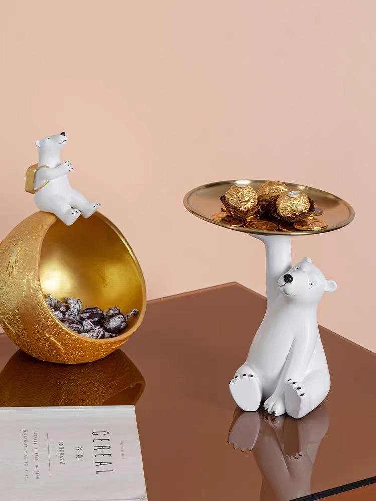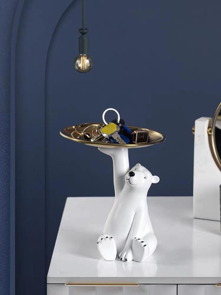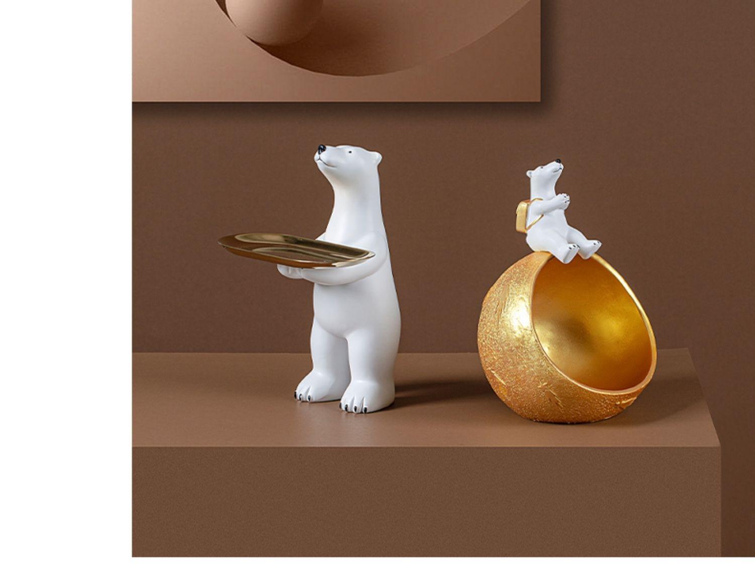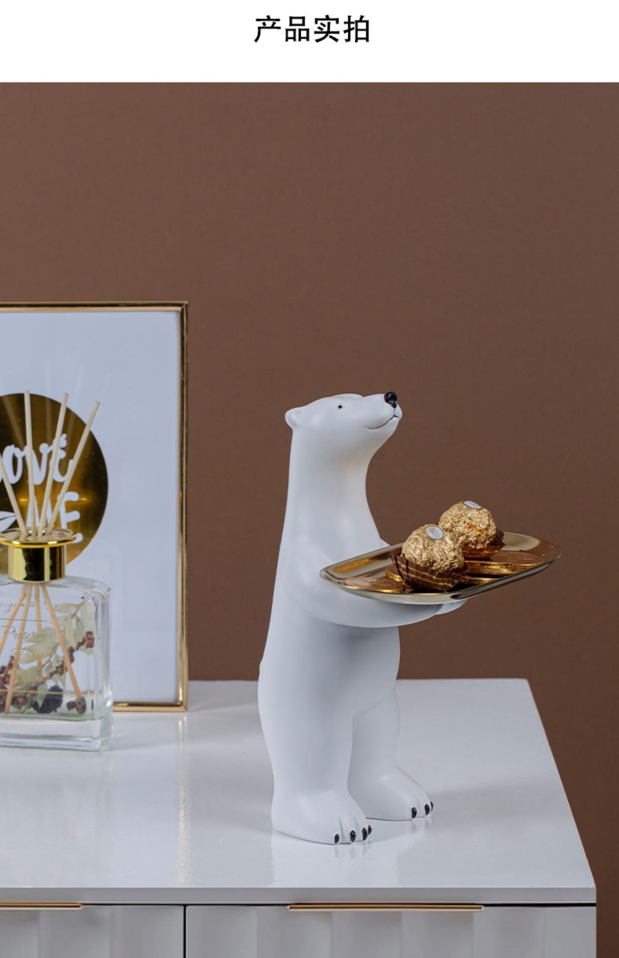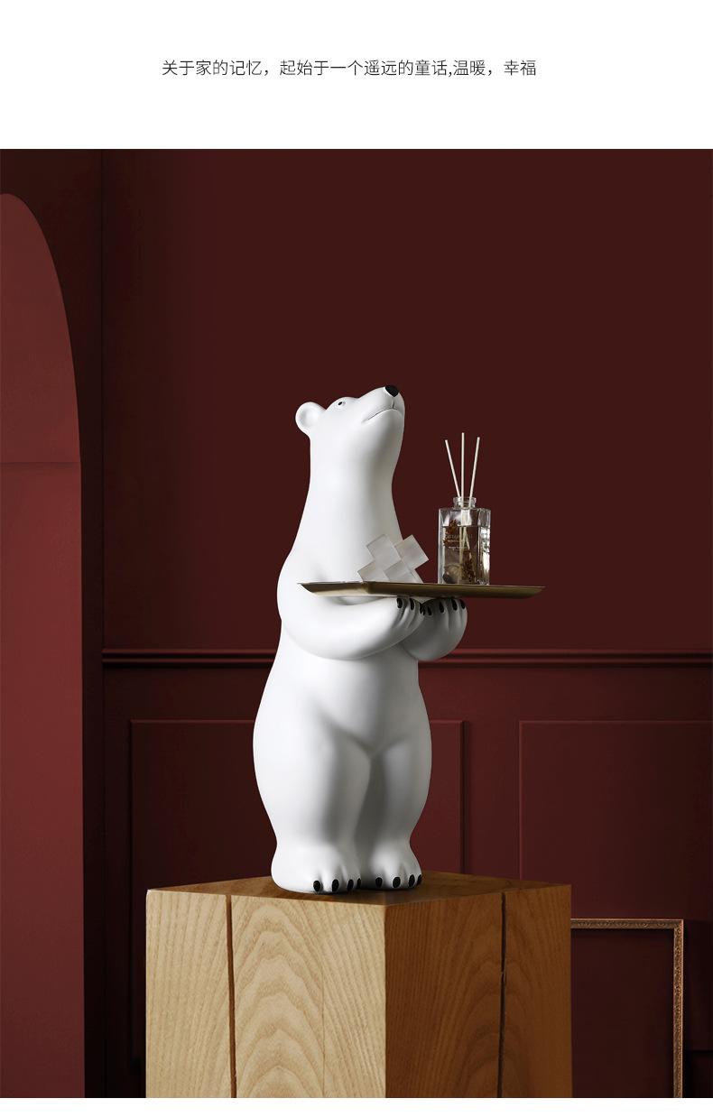Adornos de oso polar para el suelo de la sala de estar, gran animal, luz creativa, mueble de TV de lujo, bandeja de almacenamiento decorativa para escritorio
