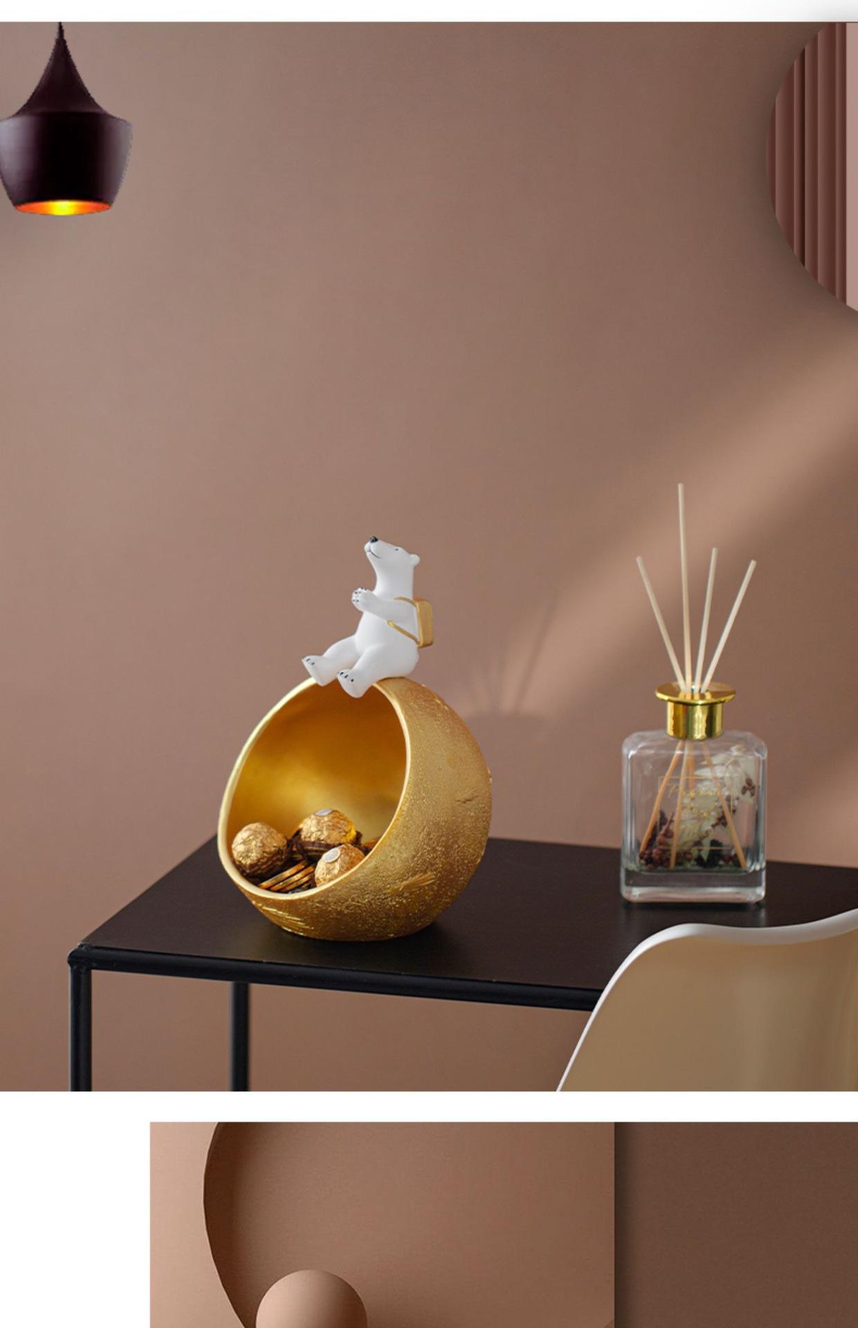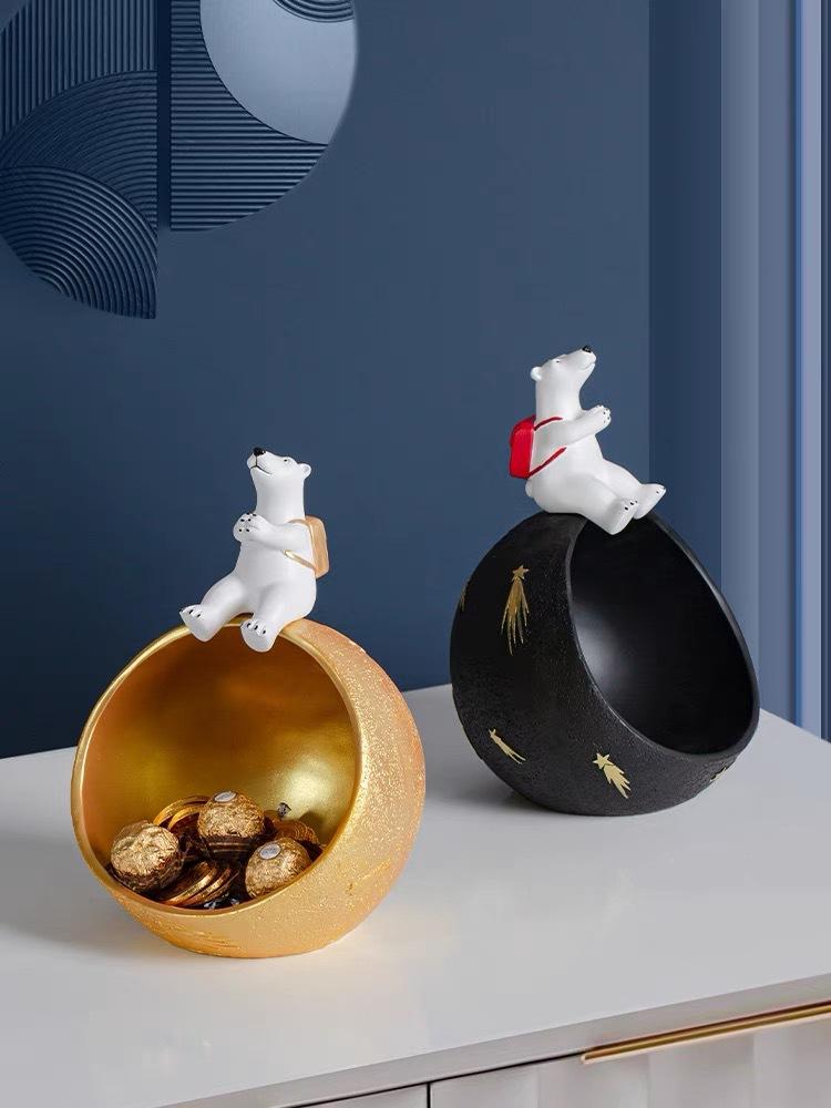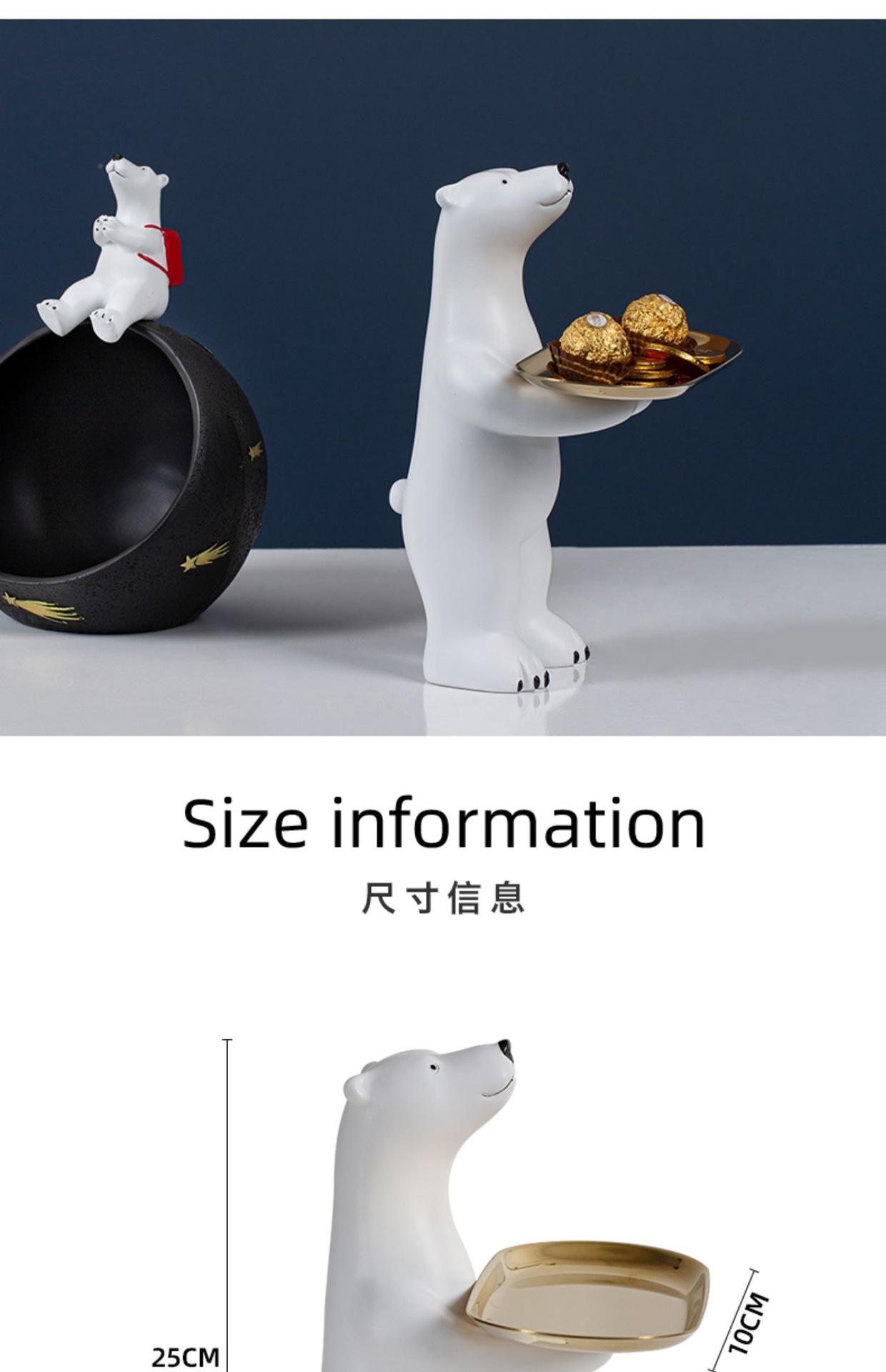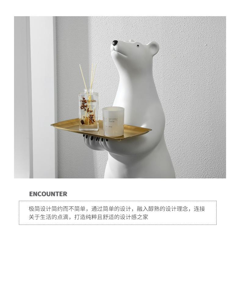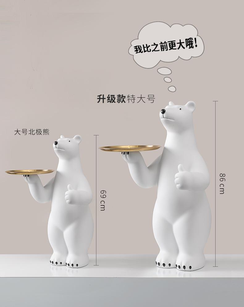 Adornos de oso polar para el suelo de la sala de estar, gran animal, luz creativa, mueble de TV de lujo, bandeja de almacenamiento decorativa para escritorio