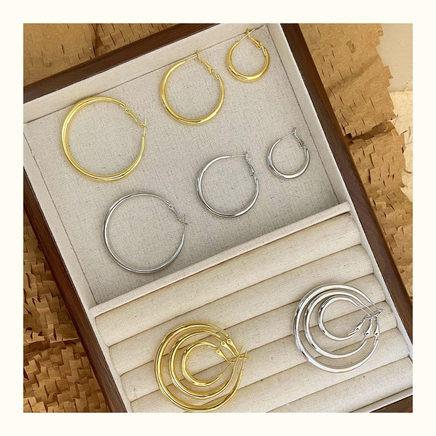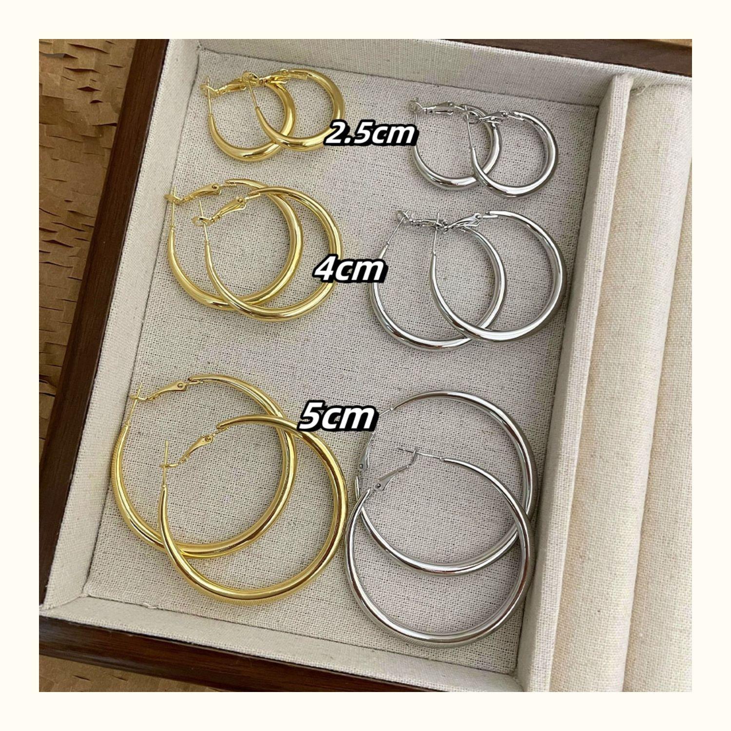 0757 plain silver spring ear clip (small size), 0607 silver 2.5cm circle 925 silver needle, 0607 gold 2.5cm ci...