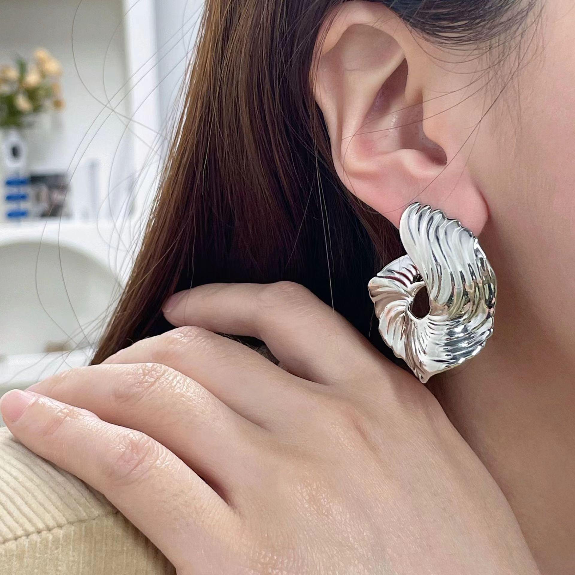 Pendientes con diseño abstracto, simple, con textura exagerada, irregulares, redondos y de gran sentido para mujer.