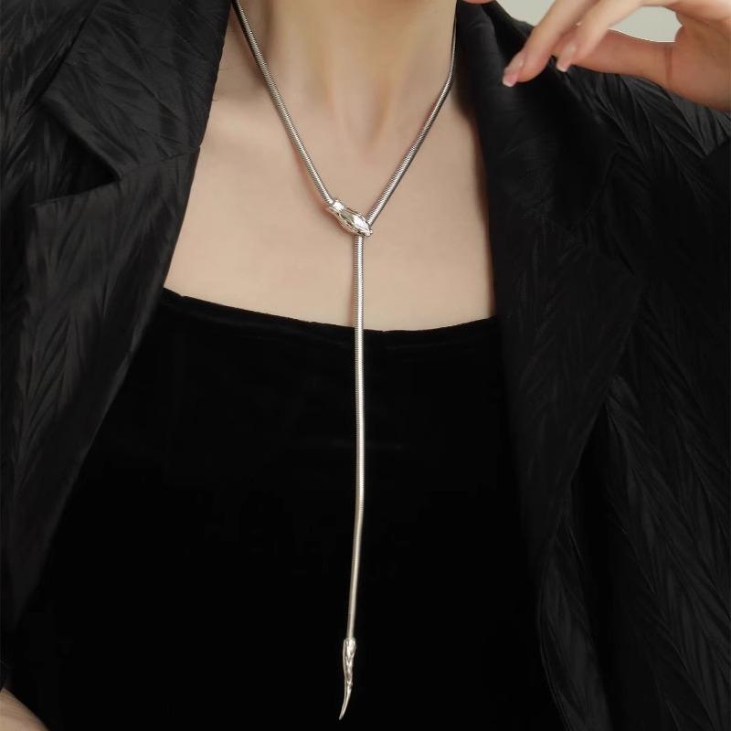 Collar con colgante de serpiente y hueso de serpiente con diseño de nicho de plata esterlina S925 para mujer, estilo frío, sencillo, combinable, de alta calidad, tipo cadena de suéter.
