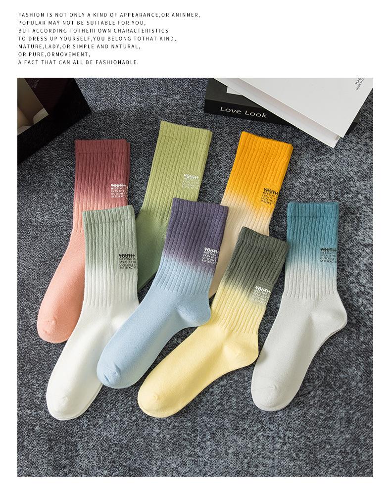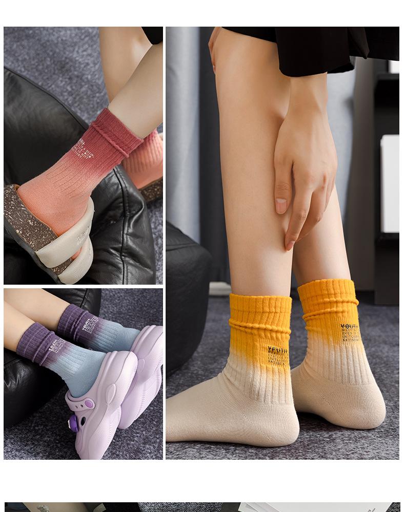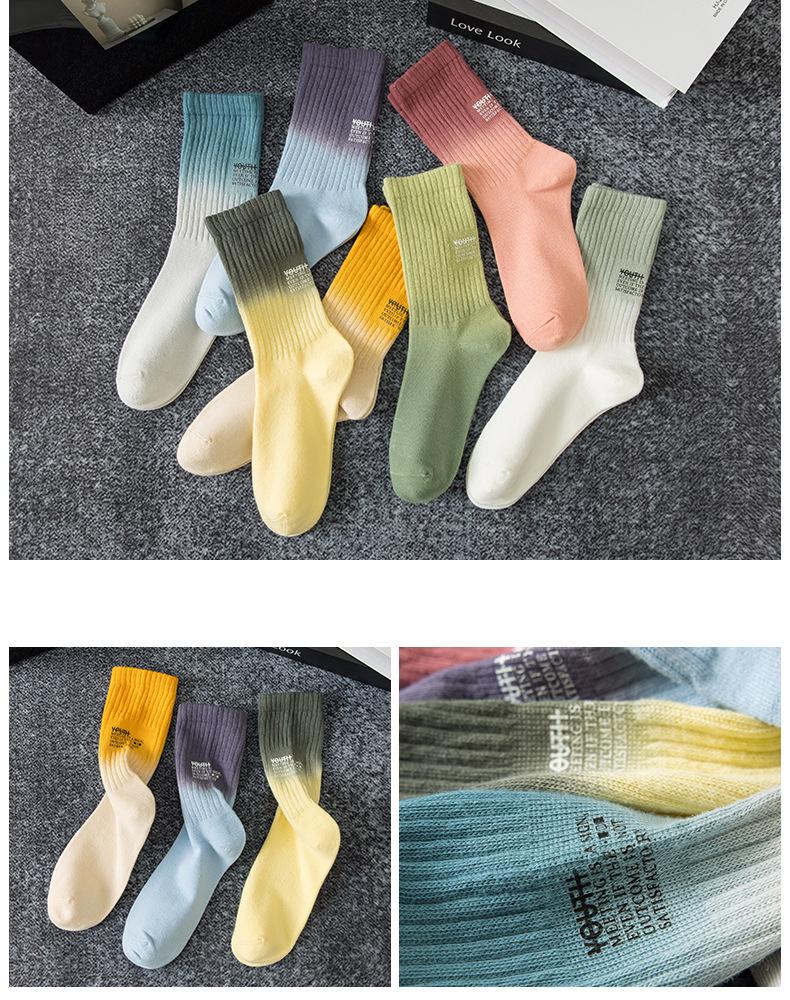 24 calcetines tie-dye nuevos de otoño e invierno para mujer, calcetines apilables degradados, calcetines de tubo medio de moda urbana, calcetines transpirables que absorben el sudor, calcetines de algodón de colores que combinan con todo.