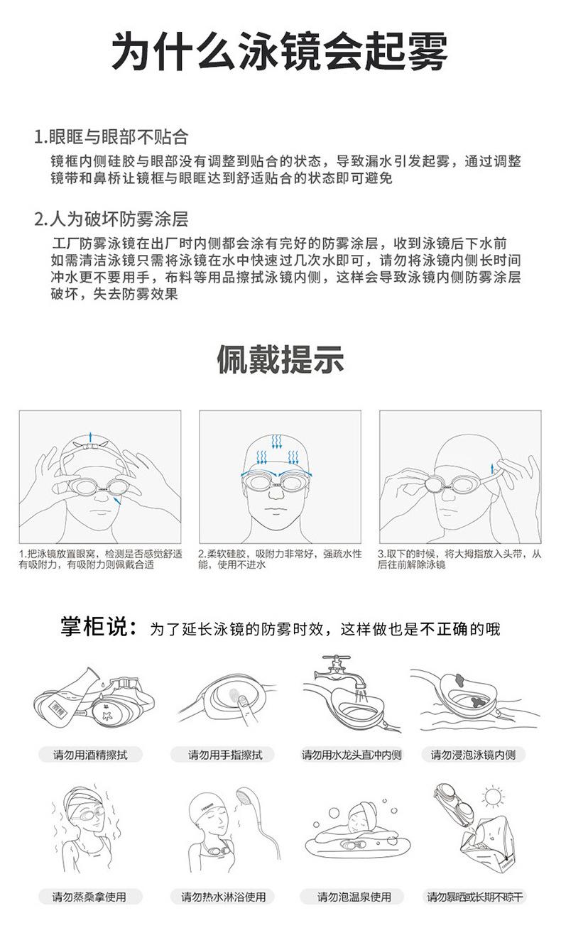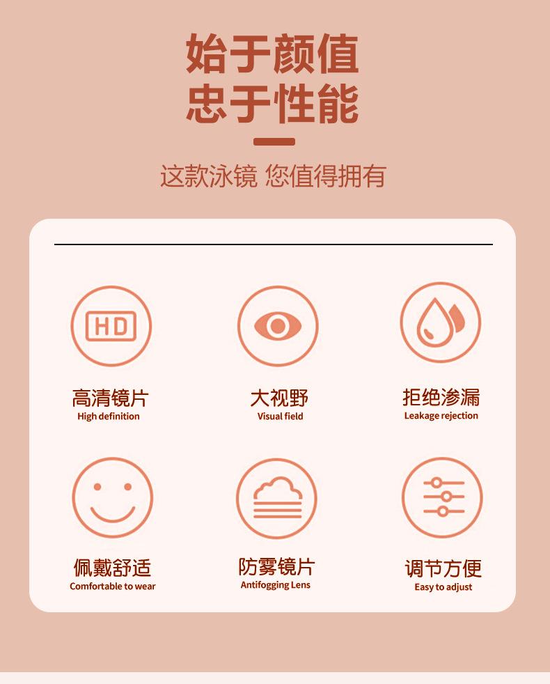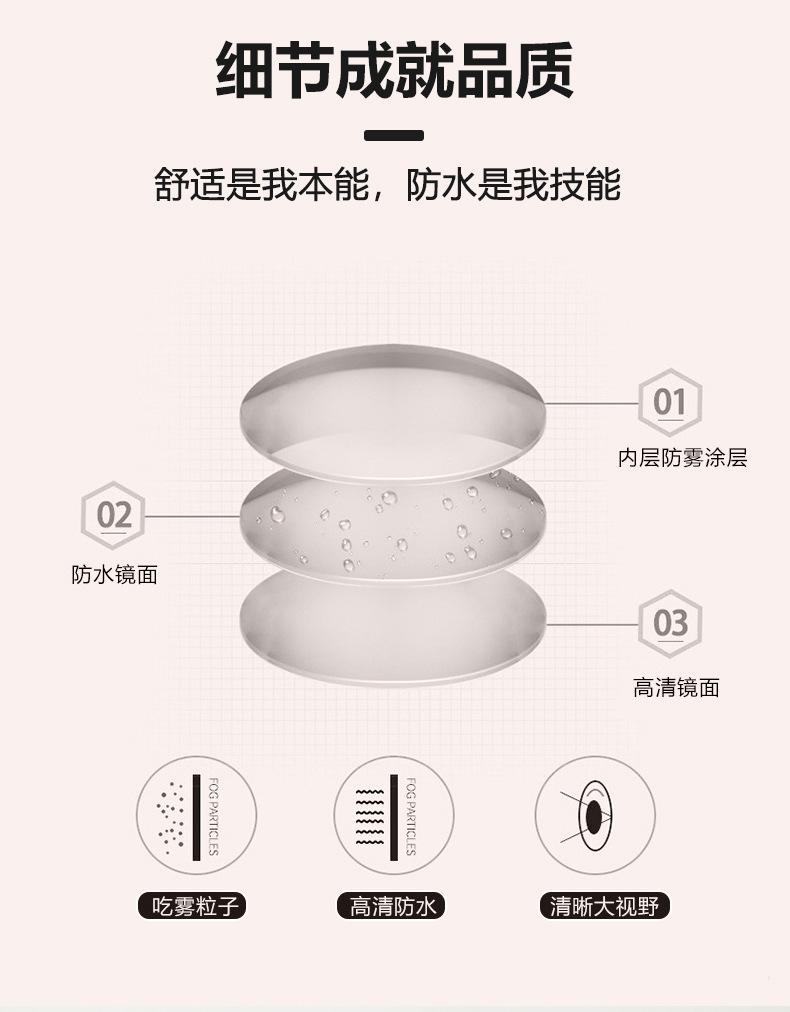【Características】: Diseño de montura grande, sin presión en las cuencas de los ojos, natación más cómoda. La junta de silicona se adhiere firmemente a la cara sin fugas. La capa interior de la lente tiene un revestimiento antivaho. La lente es resistente a los rayos UV y protege los ojos.