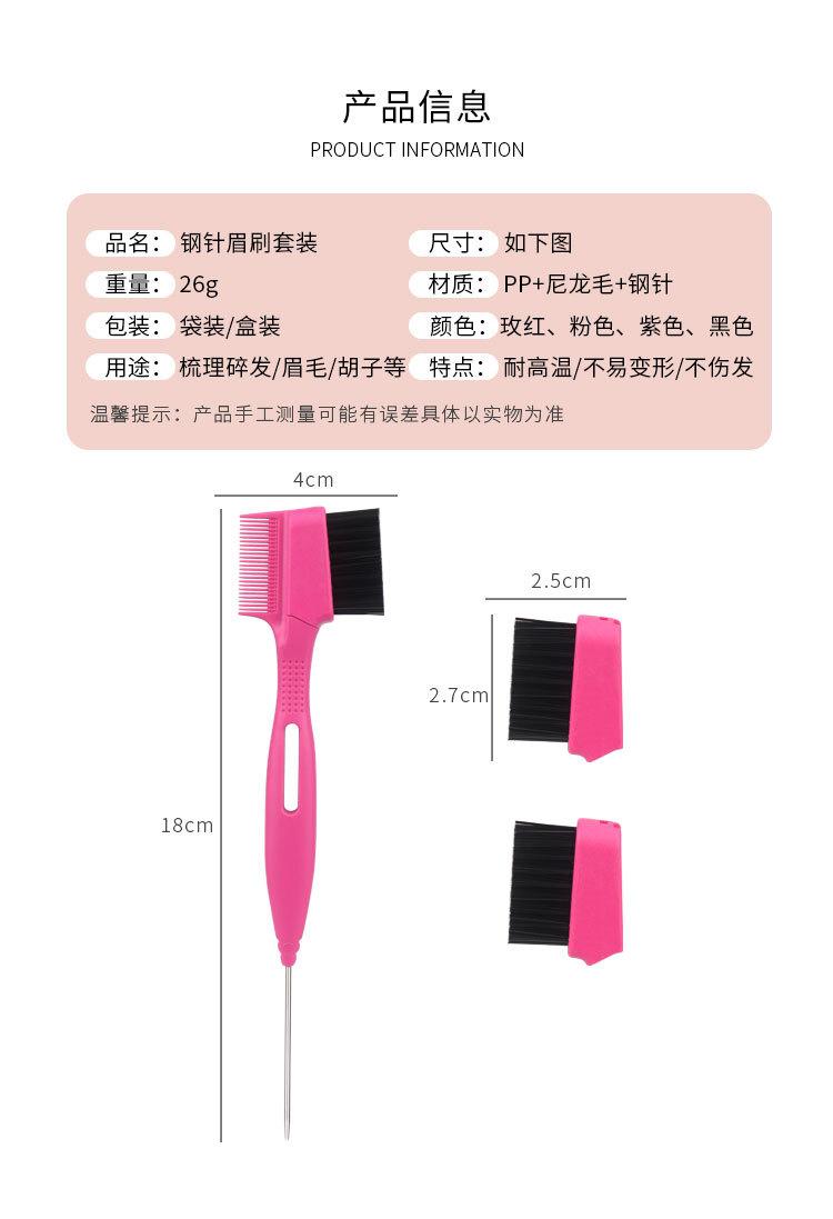 Nuevo cepillo peine para el cabello desmontable peine para el cabello aguja de acero peine de cola puntiaguda cepillo para cejas de doble cabezal cepillo para control de bordes cepillo de maquillaje fábrica
