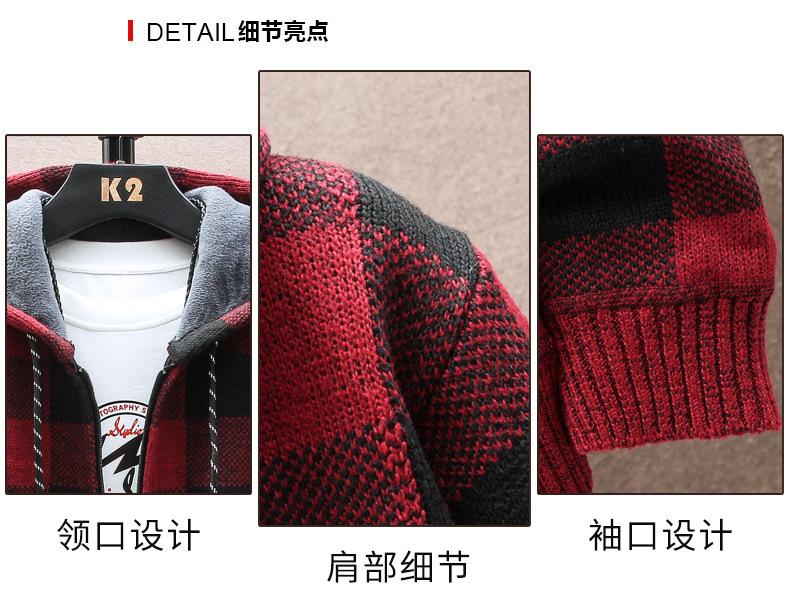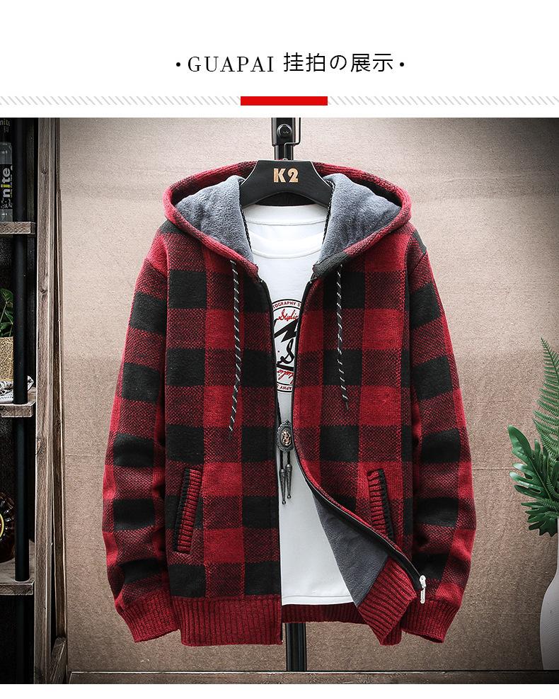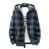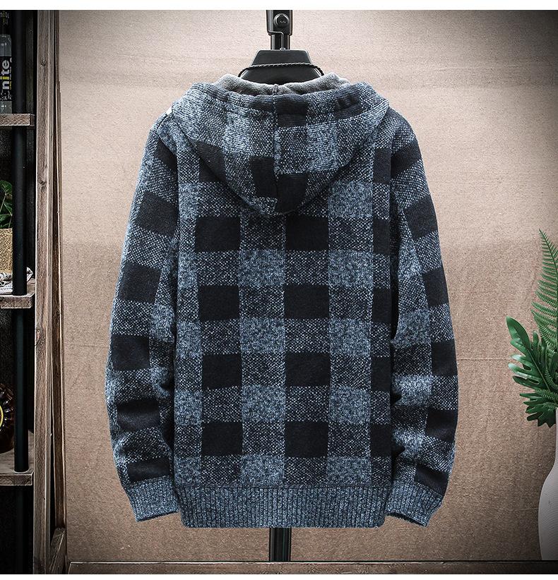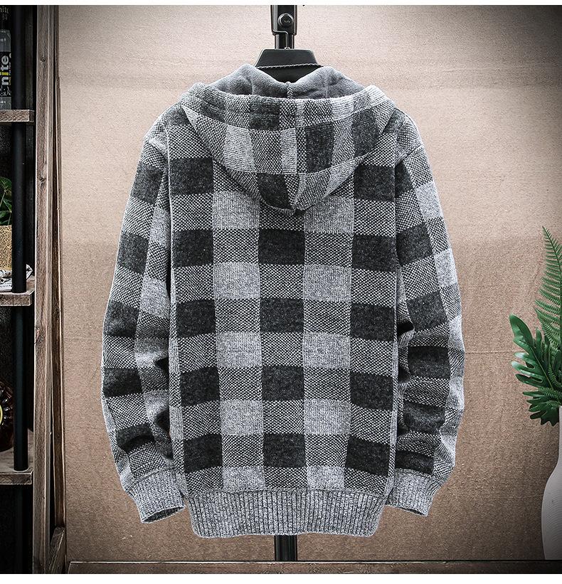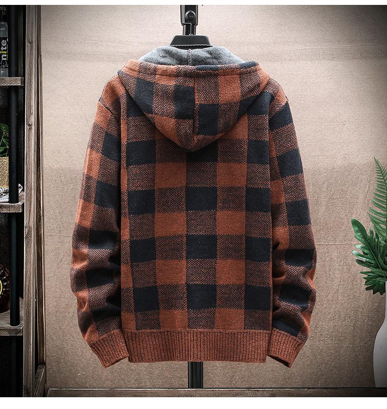 Suéter de comercio exterior para hombre, otoño e invierno, nuevo cárdigan con cremallera y capucha gruesa con forro polar, suéter a cuadros coreano.