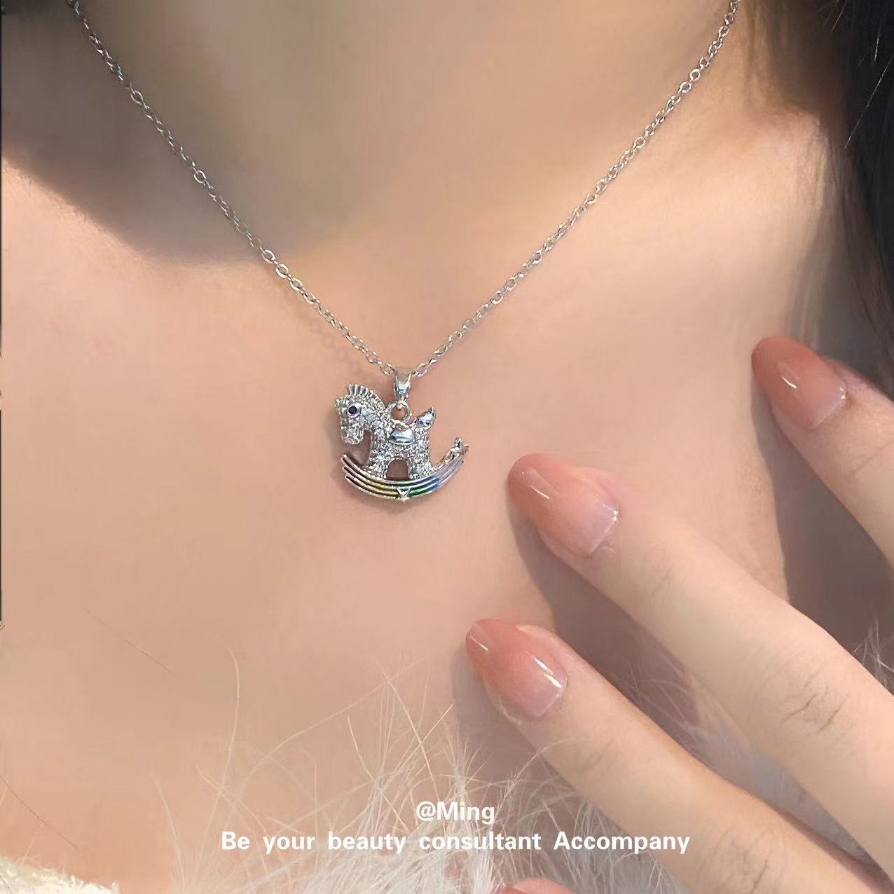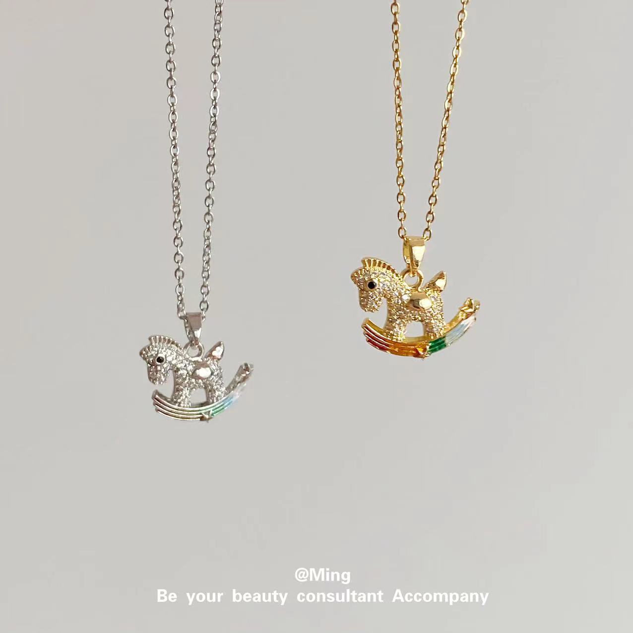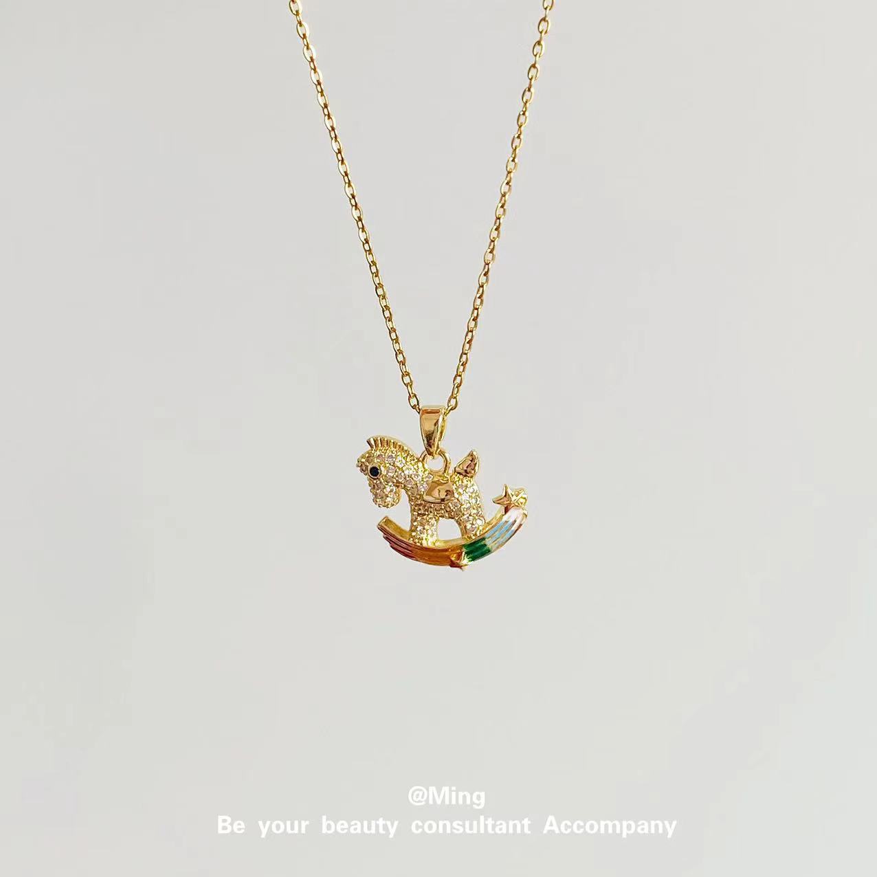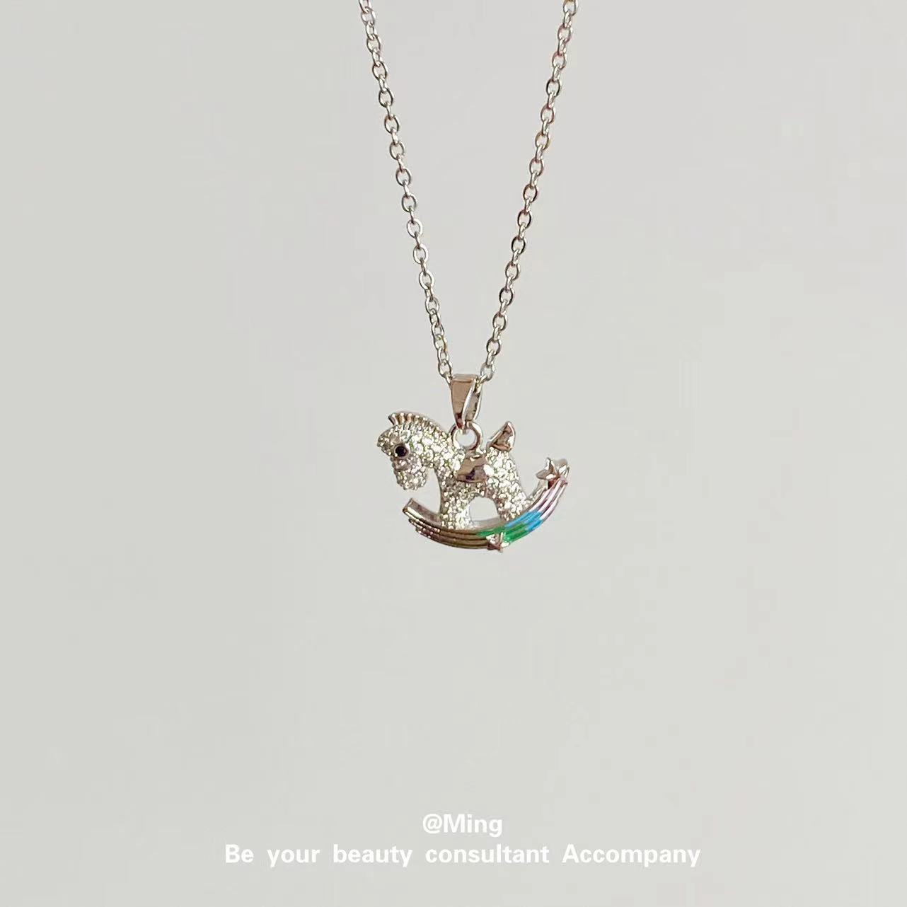 Collar con colgante transfronterizo de poni colorido, estilo europeo y americano, joyería de caballo arcoíris, cadena de clavícula de diamantes, cadena de cuello simple y versátil, fabricantes