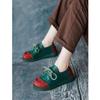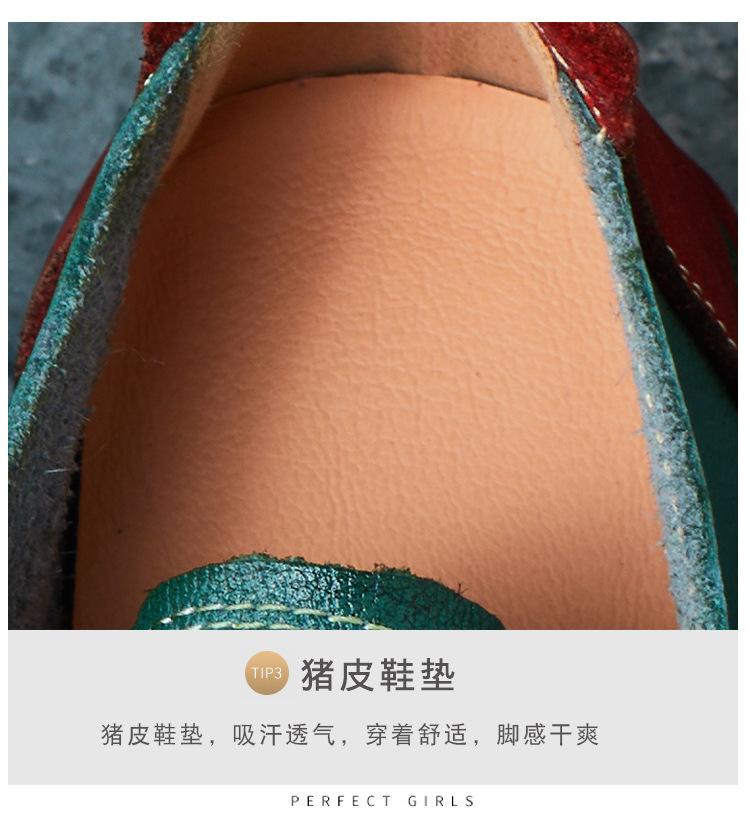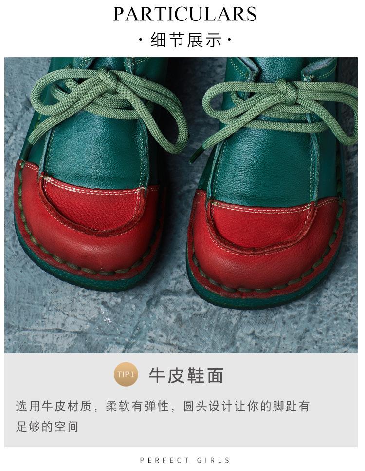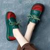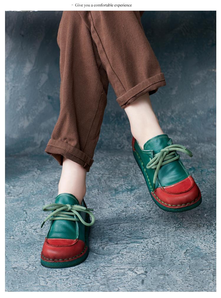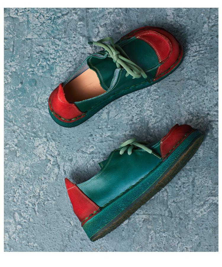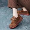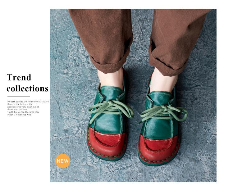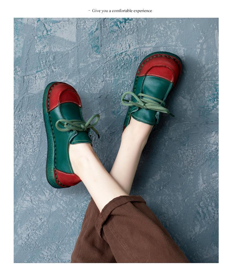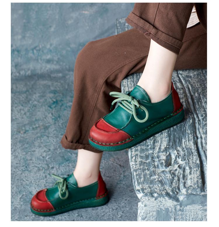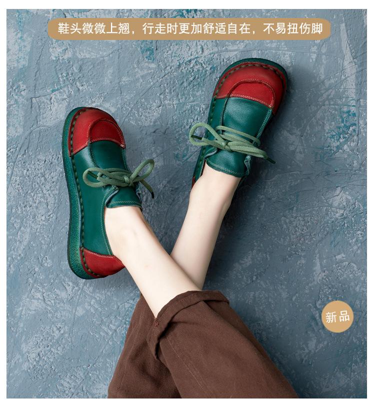 2025 Otoño Nuevo Estilo Étnico Retro Piel de Vaca Punta Redonda Zapatos de Mujer con Cordones Casuales de Tacón Bajo Plano Zapatos de Suela Blanda