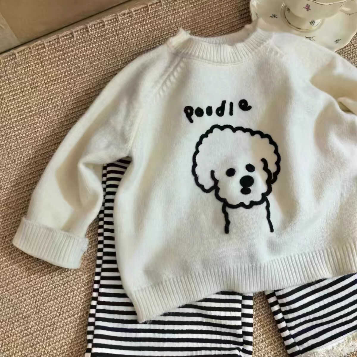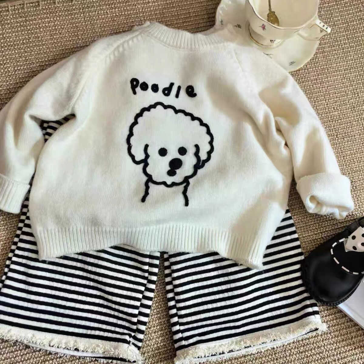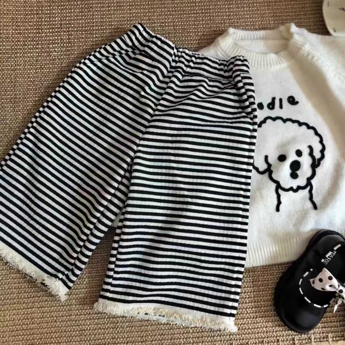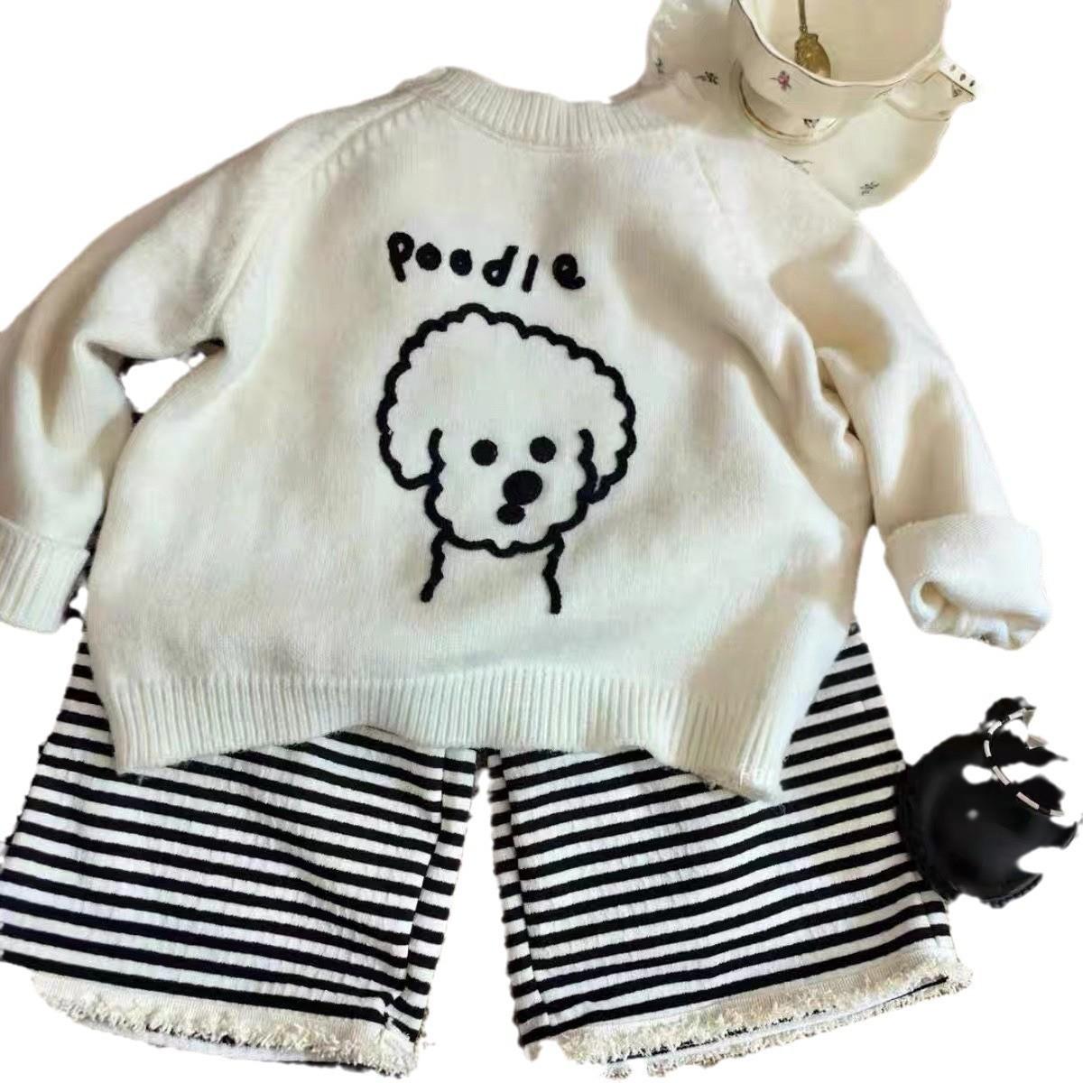 Traje Lindo de Estilo Literario para Bebé Niña Ropa de Otoño para Bebé Niña 2025 Nuevo Set de Dos Piezas para Niñas Suéter a Rayas y Pantalones