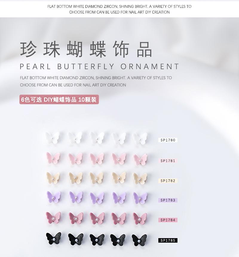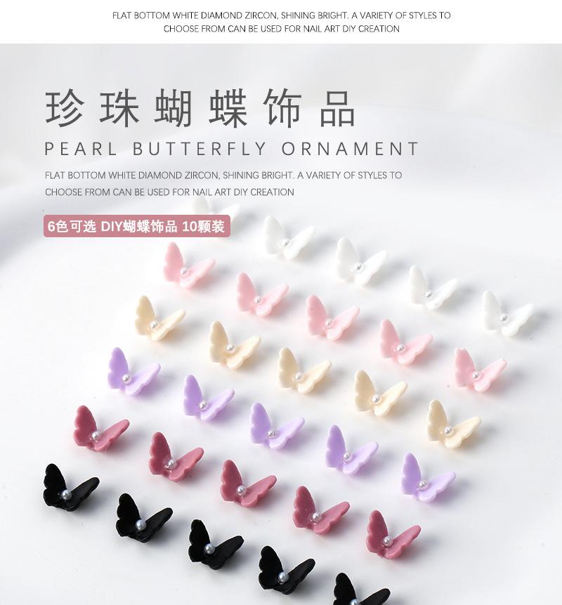 Joyería de uñas de mariposa, resina de mariposa de perla, color tridimensional, diamante, joyería de uñas de mariposa de perla, 10