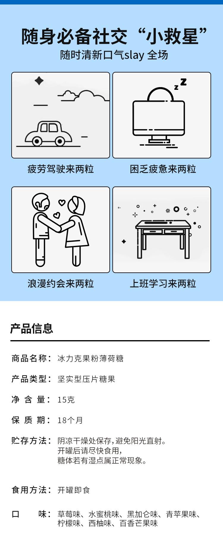 15g ice kick fruit powder mints (lemon flavor), 15g ice kick fruit powder mints (strawberry flavor), 15g ice k...