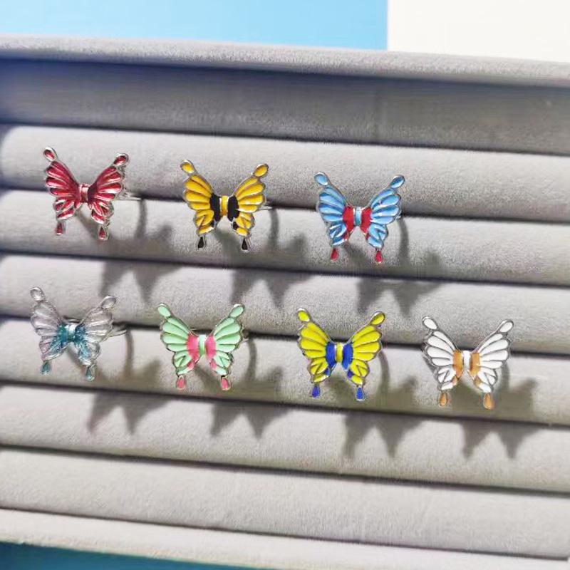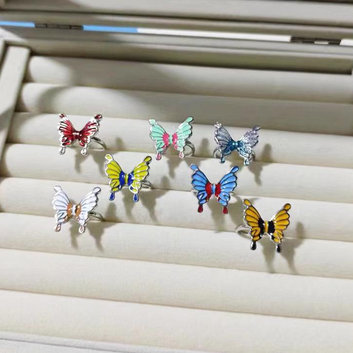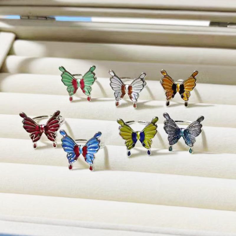 Nuevo anillo abierto con forma de mariposa y esmalte de gota para mujer, estilo francés, exquisito nicho de alta gama, dulce y moderno.