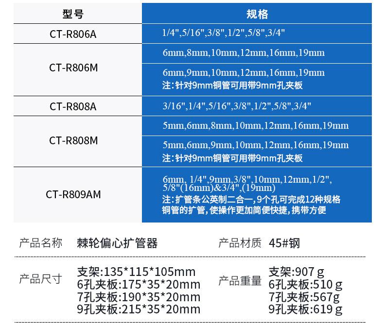 CT-R806 45 expandidor excéntrico de carraca cabezal basculante tipo rodillo superior abocardador 6-19 juego de 2 piezas