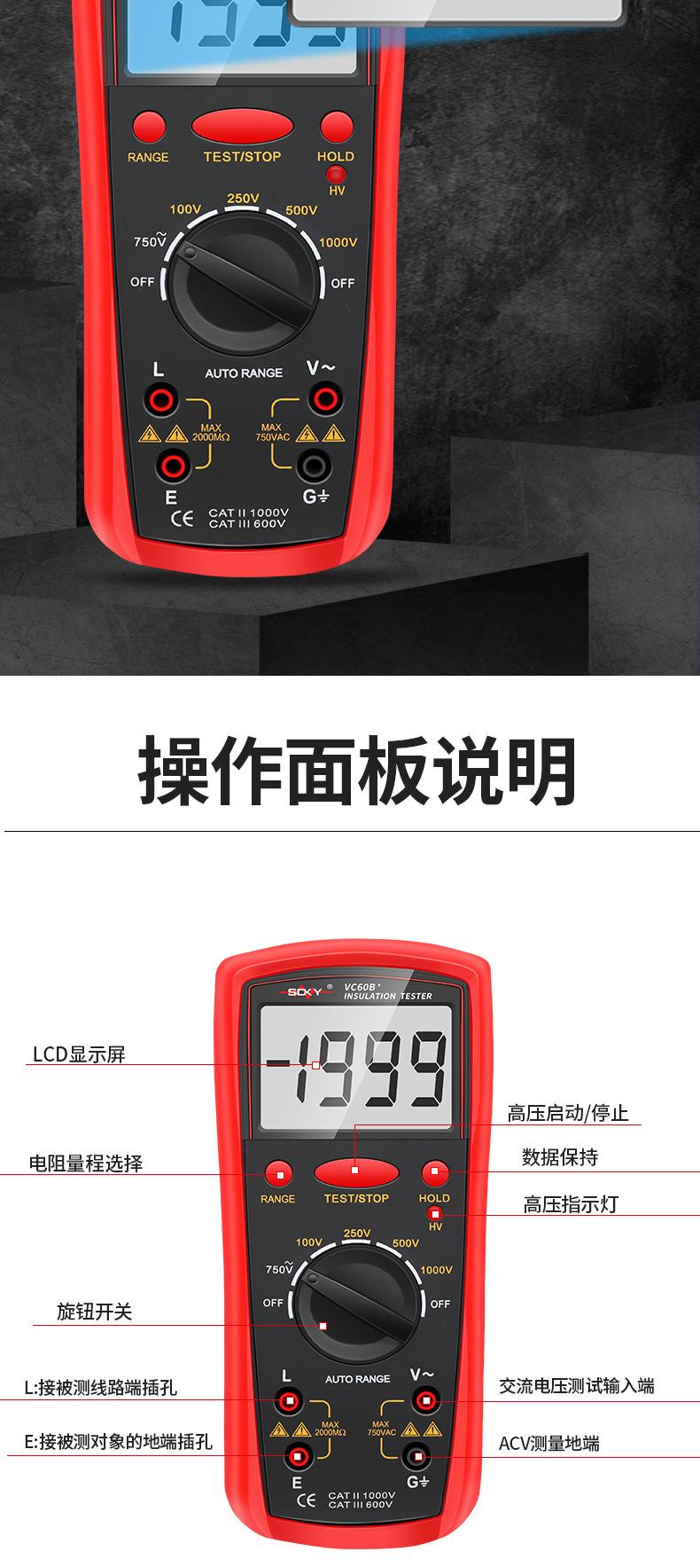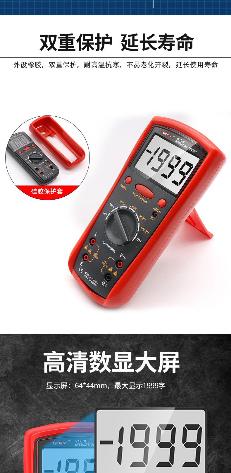 VC60B comes standard (1000V\2G Ω) with 6 5 charging suit to send pointer cloth