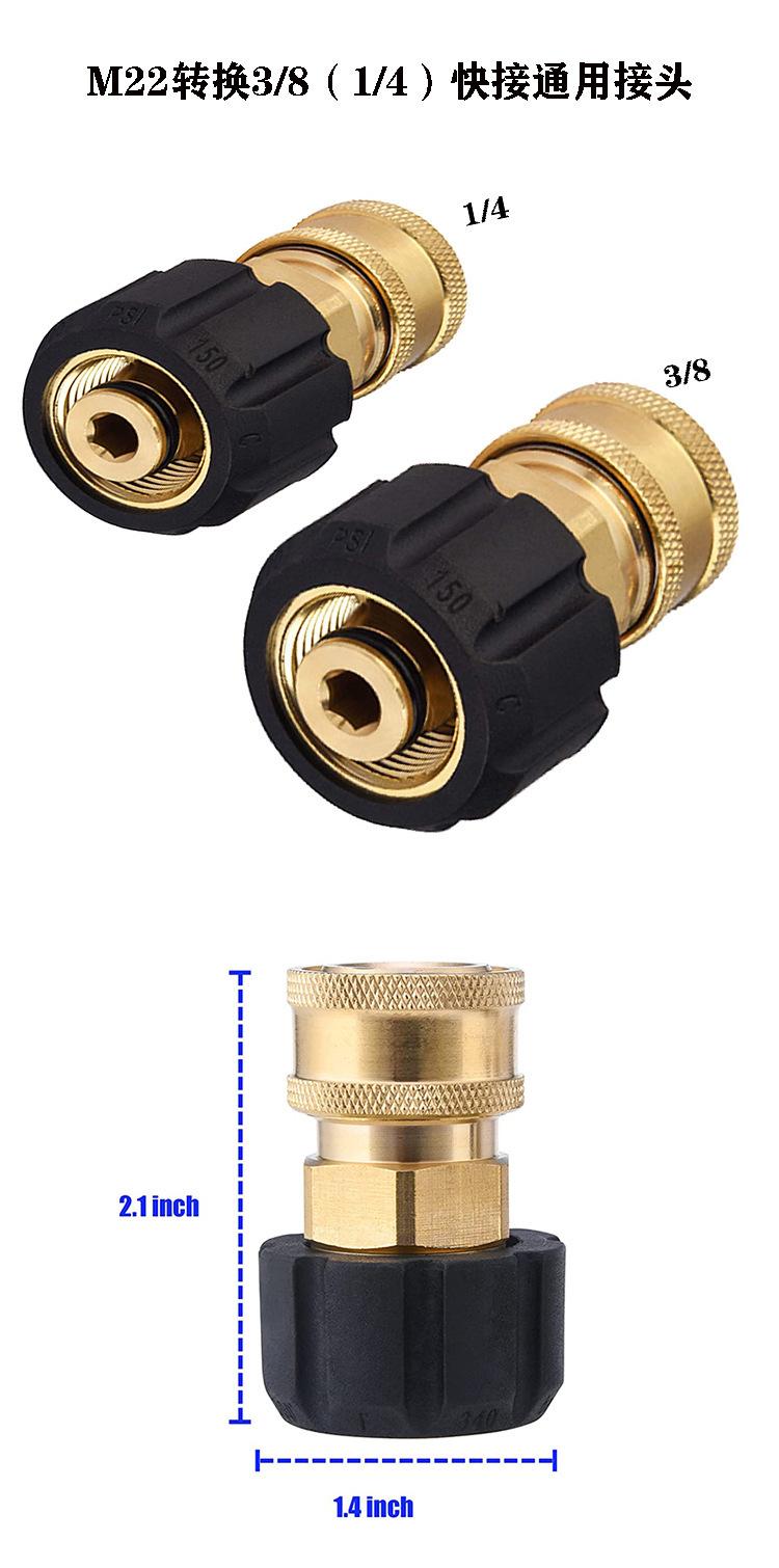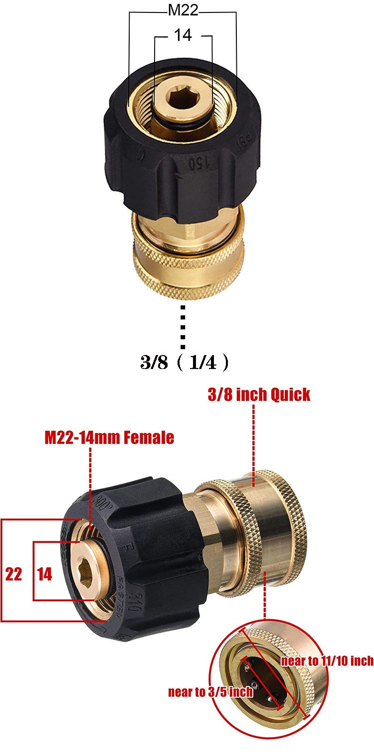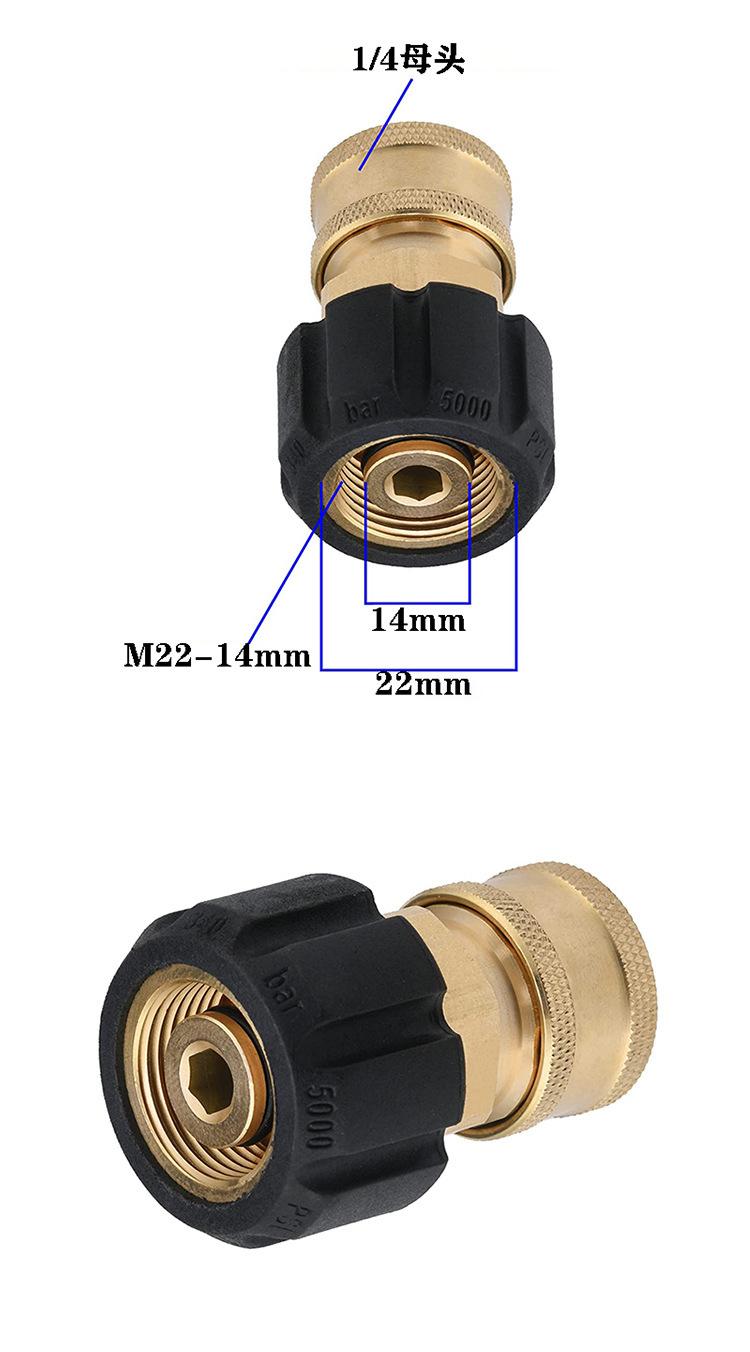 Adaptador de pistola de agua de alta presión M22-14 para máquina de limpieza de 3/8" al por mayor transfronterizo(1/4) Conector hembra de cobre de giro rápido