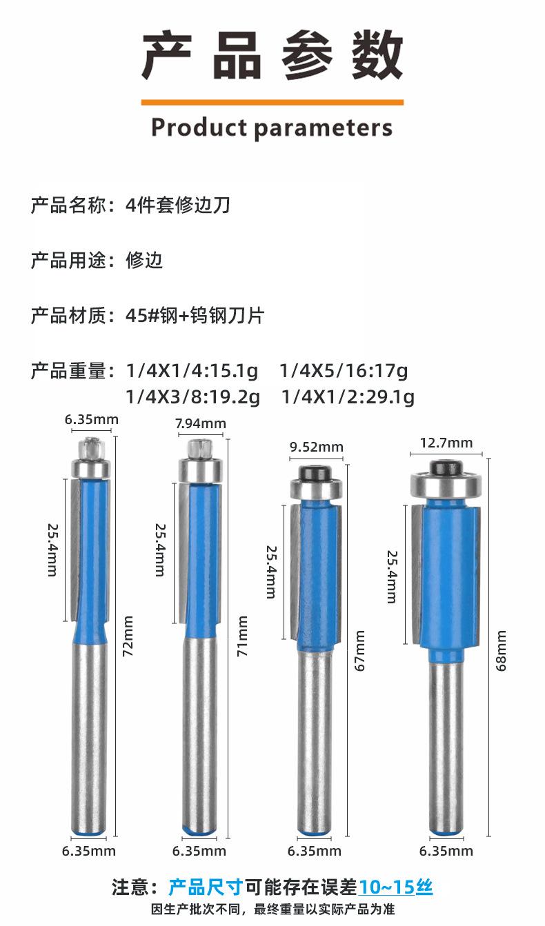 Compra Juego de 4 cortadores de recorte azules Yusheng, cortador de fresado para carpintería con mango de 1/4, mango de doble hoja con rodamiento único, cortador de recorte recto, máquina recortadora al por mayor en Joom.pro