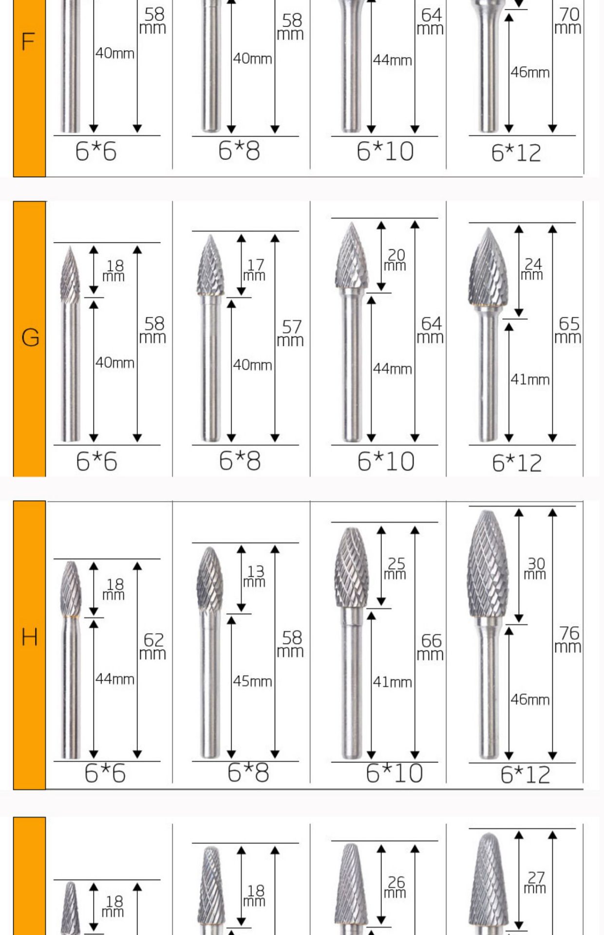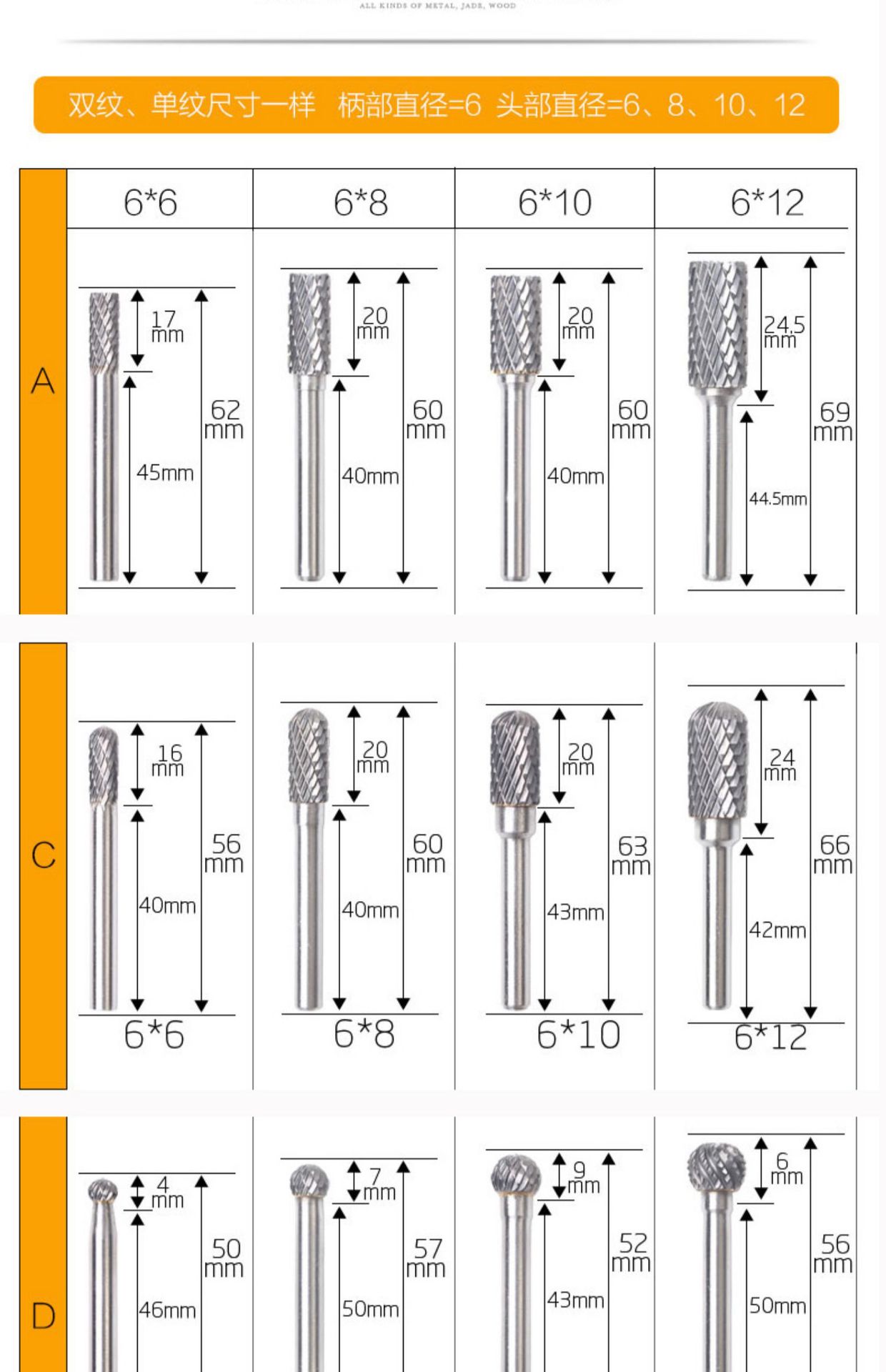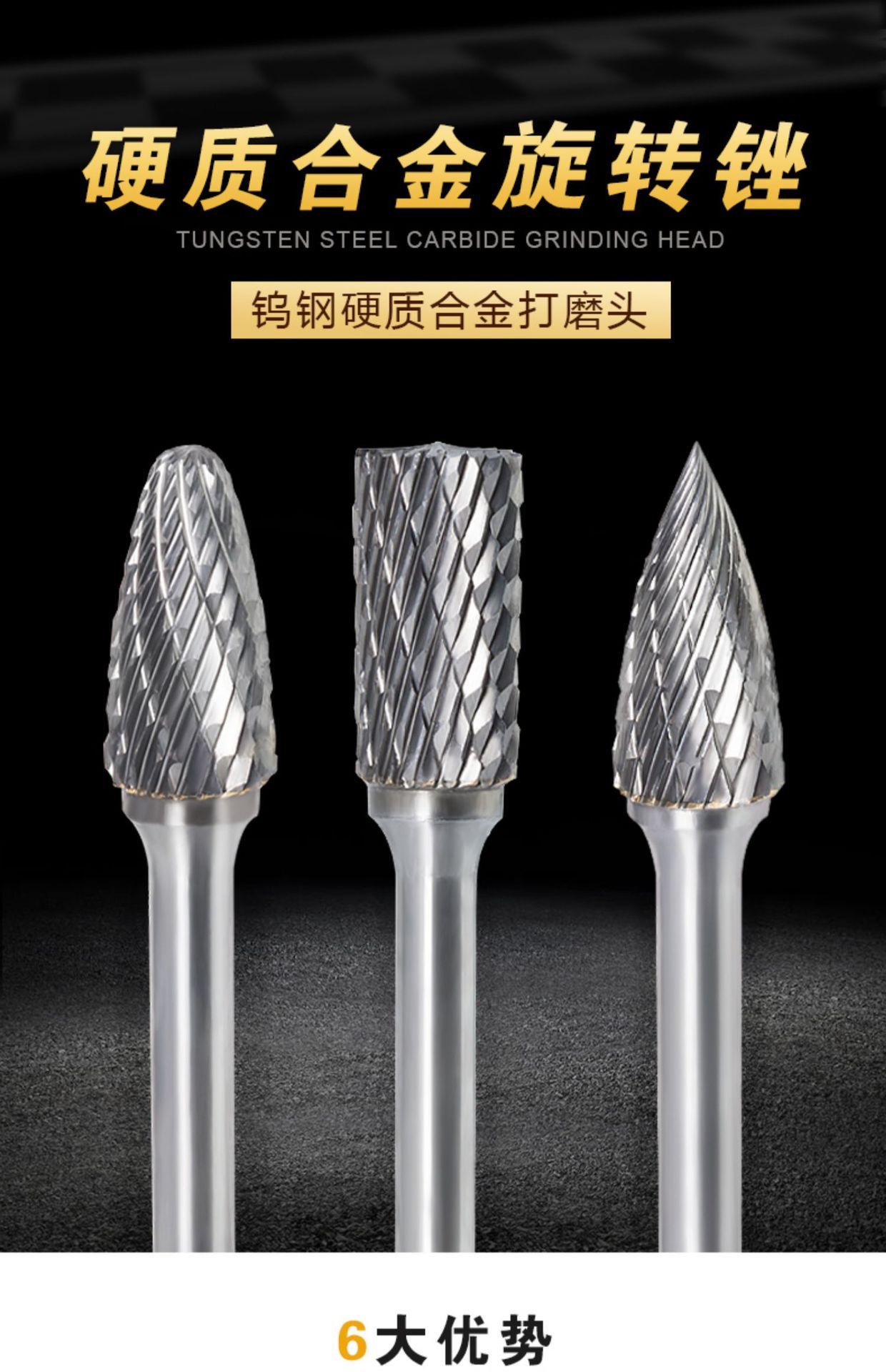 Cabezal de pulido de acero de tungsteno con lima rotatoria de carburo, cabezal de pulido de metal, cabezal de pulido eléctrico de madera de 6, 8, 10, 12 y 14 mm