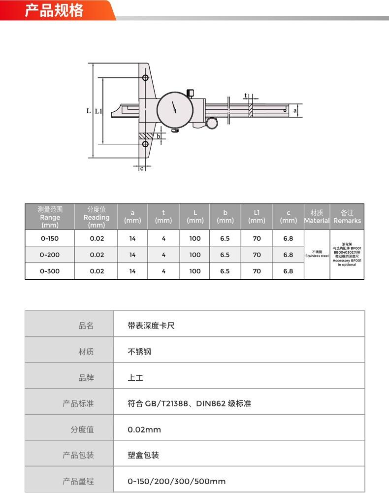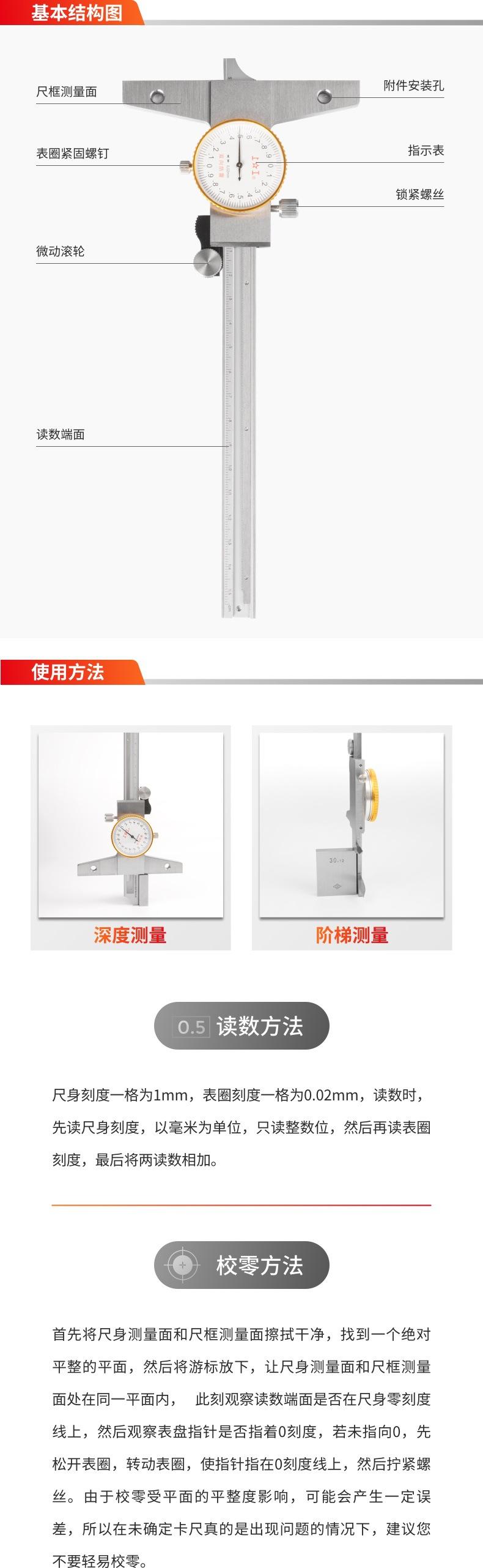 Depth caliper with watch 0-150mm, Depth caliper with watch 0-200mm, Depth caliper with dial 0-300mm
