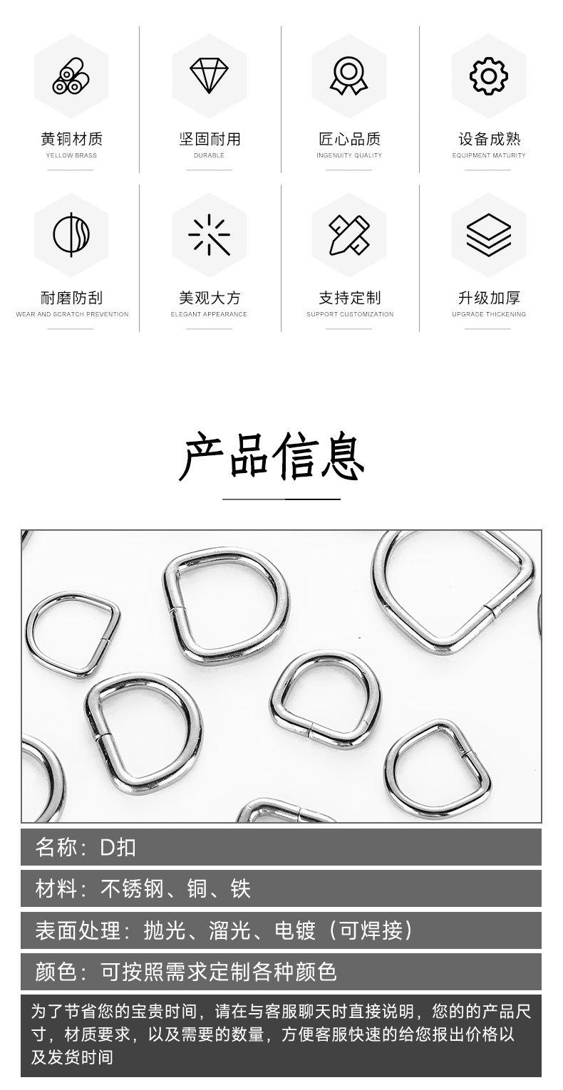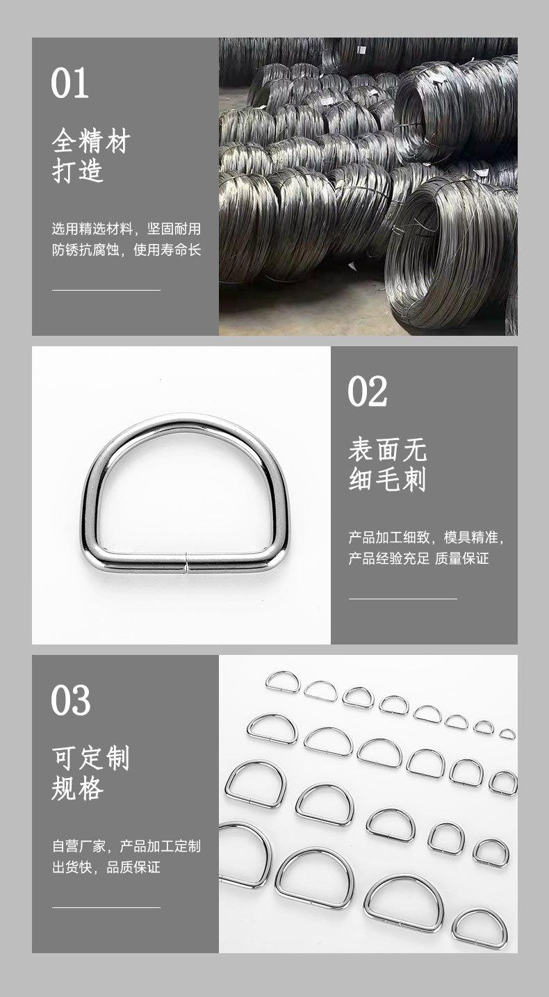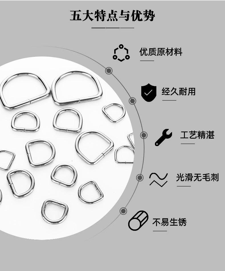 Accesorios de ferretería fabricante de anillos de hierro hebilla en forma de D hebilla metálica en forma de D color acero inoxidable blanco plateado anillo en forma de D