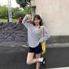 Camiseta holgada de manga larga a rayas de estilo perezoso para mujer, otoño 2024, estilo europeo y americano, top ajustado con cuello en V grande
