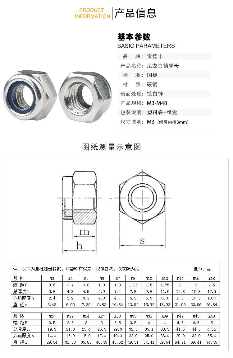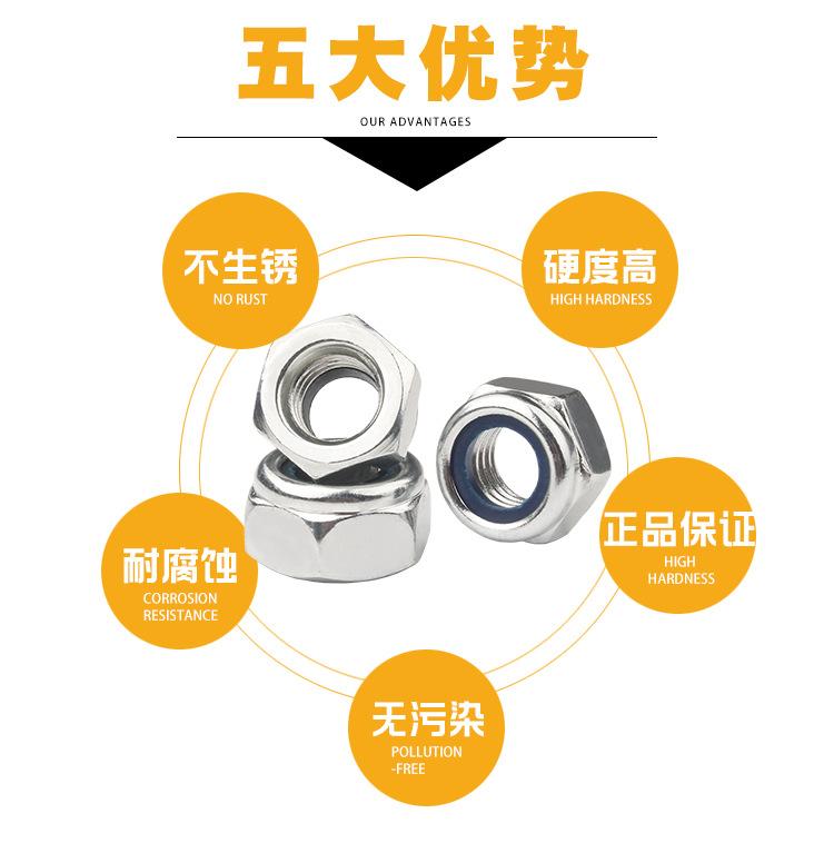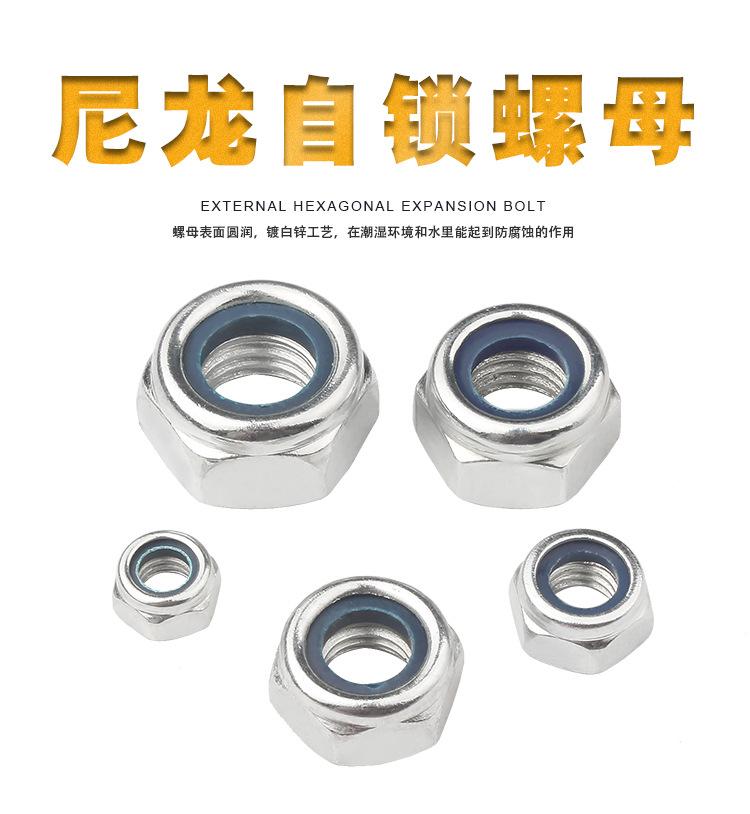 Tuerca de seguridad galvanizada de hierro, anillo de goma de nailon, tapa de tornillo autoblocante, tuerca hexagonal de bloqueo antiliberación M2M3M4M5M6M8