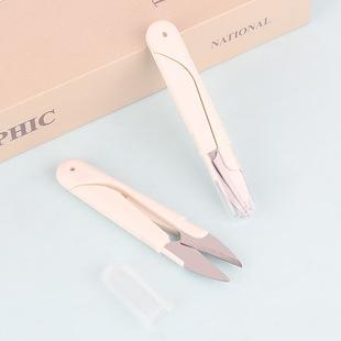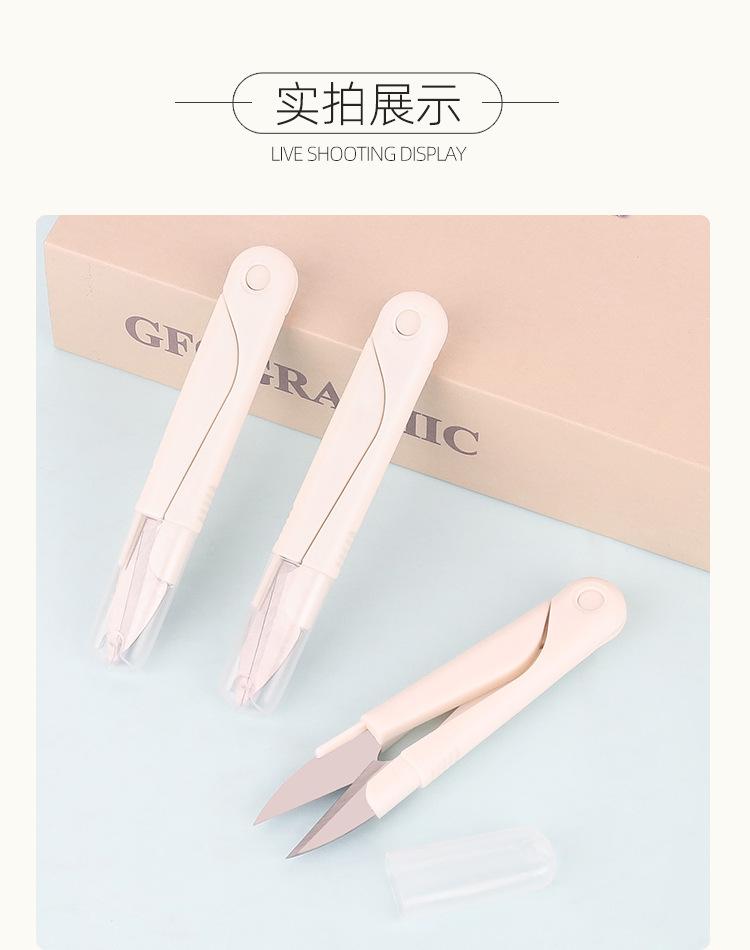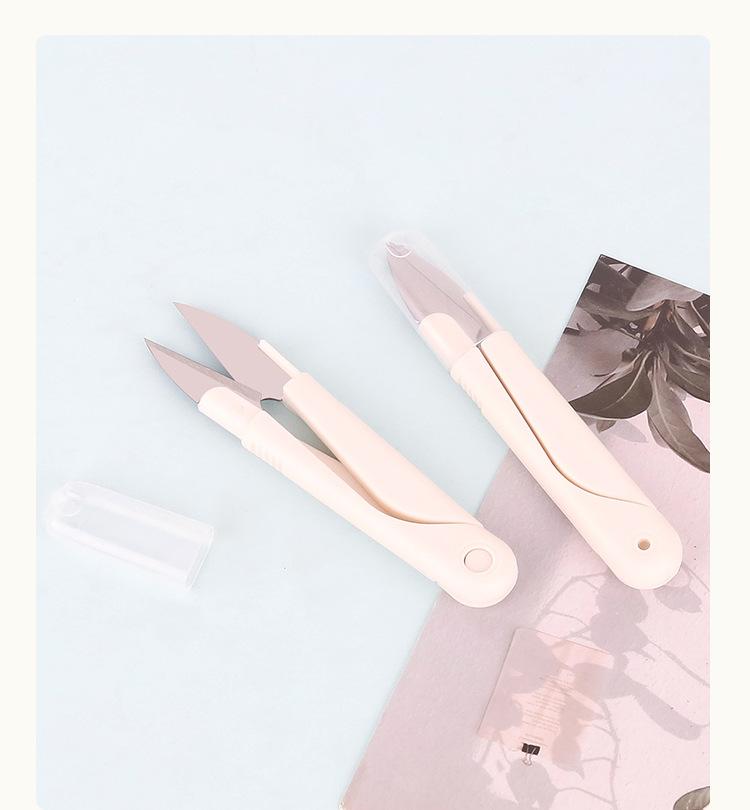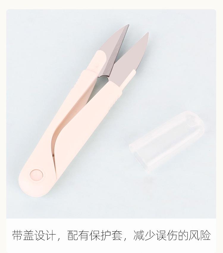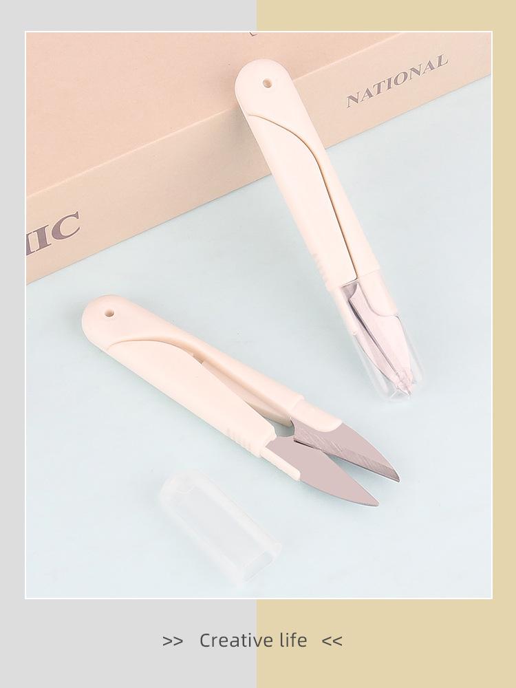Tijeras de hilo con resorte de plástico, tijeras domésticas de alta calidad en forma de U, cortador de hilo, cubierta de cinturón de seguridad, tijeras de acero inoxidable con tapa