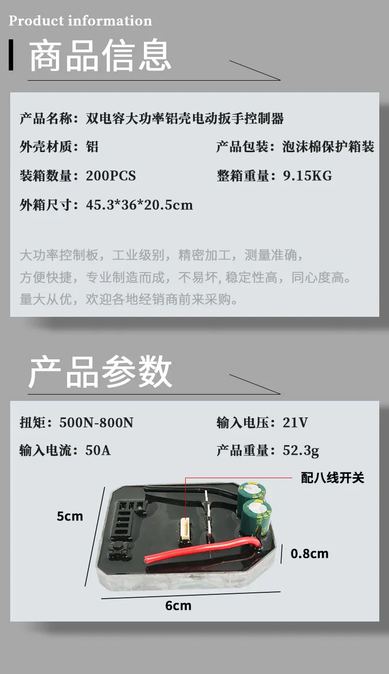 High-power brushless lithium electric wrench, Double capacitor wrench controller