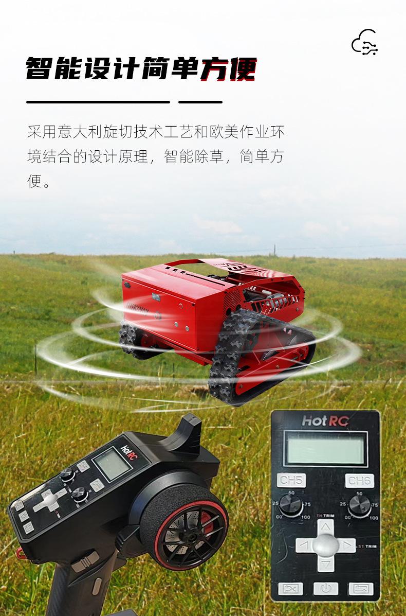 Cortacésped oruga con control remoto TM750, control remoto inalámbrico inteligente, doble potencia aceite-eléctrica, adecuado para desbrozar y eliminar maleza en silvicultura, pastizales, carreteras, presas, agricultura y silvicultura, huertos, hortalizas, invernaderos, granjas, parques ecológicos, viñedos, pastizales, zonas verdes municipales y otros lugares.