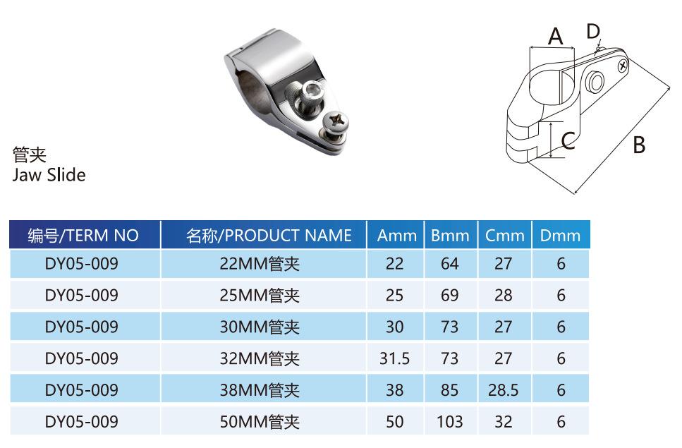 Abrazadera de tubo de acero inoxidable 316, cuerpo abierto desmontable, manga deslizante, accesorio de fijación para toldo de techo de barco, herrajes marinos.
